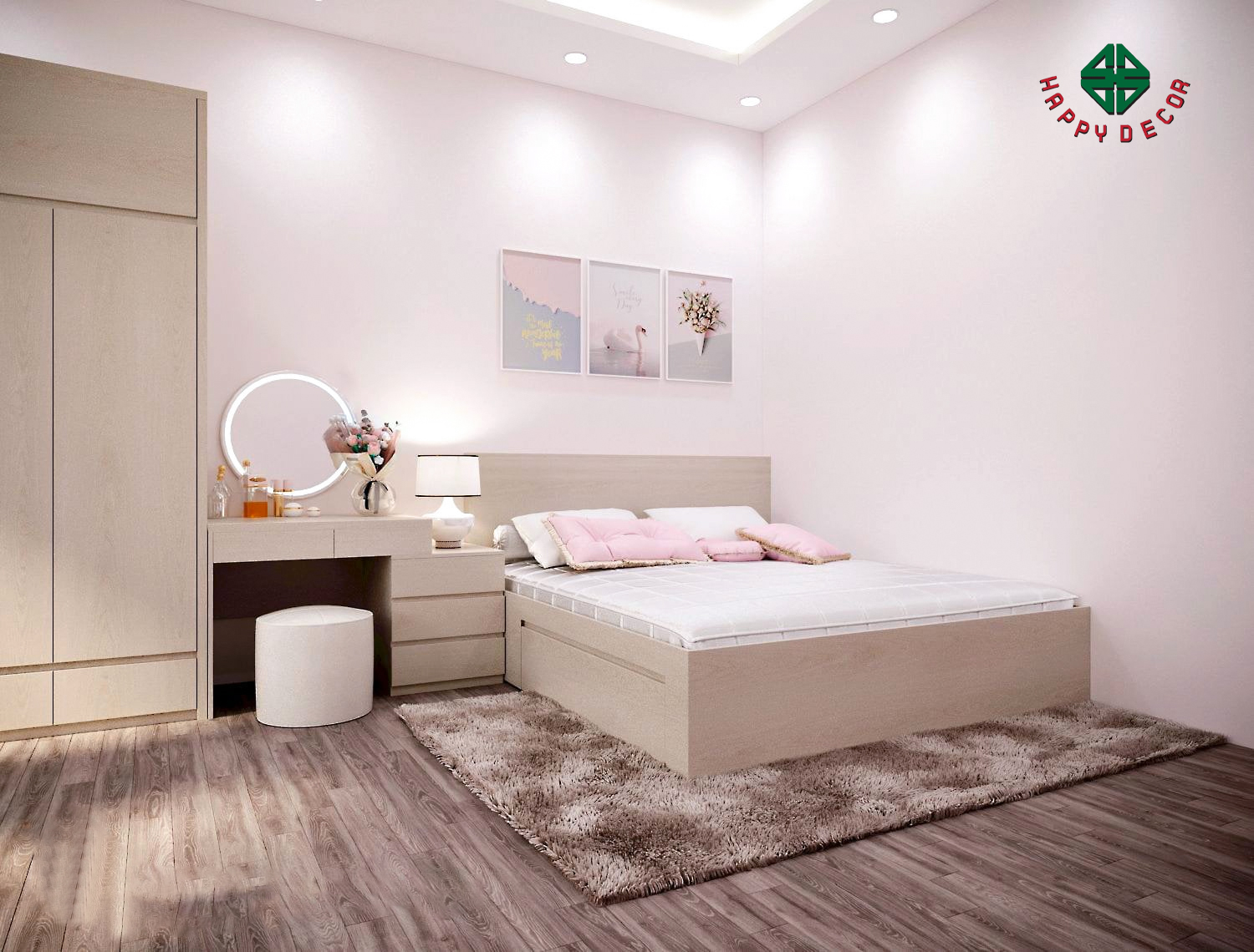 giường ngủ kết hợp tủ đầu giường và bàn trang điểm