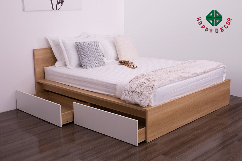 Giường bằng gỗ công nghiệp thường được thiết kế với tính năng đa dạng