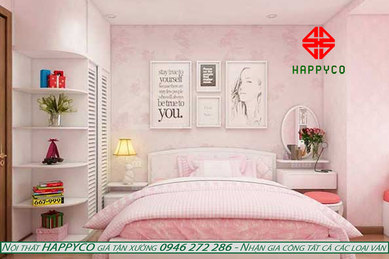 Một cô nàng độc thân thì không nên bỏ qua mẫu phòng ngủ 11m2 màu hồng này. Vô cùng ấn tượng và thích mắt, không gian tuy nhỏ nhưng với tông màu sáng thì tổng thể vẫn thoáng mát. Các kệ tủ và đồ trang trí hòa hợp ăn ý với nhau.