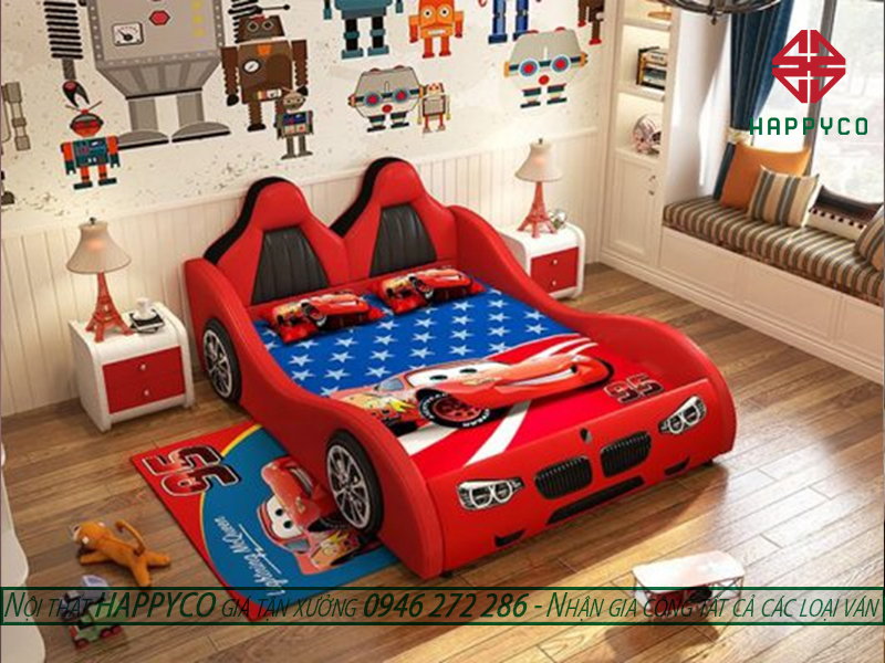 Nội thất phòng ngủ cho bé trai với mô hình ô tô
