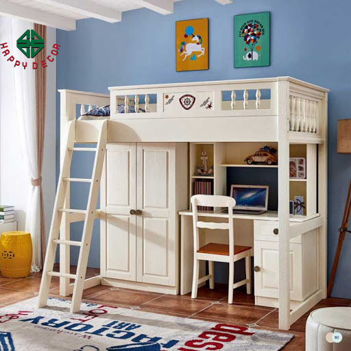 Theo đó, khu vực khoảng không gian trống bên dưới sẽ được sử dụng như góc học tập và làm việc, trang bị tủ và ghế đọc sách, tủ quần áo…chiếc giường lúc này như một căn nhà thu nhỏ với đầy đủ các chức năng làm việc, vui chơi, giải trí.