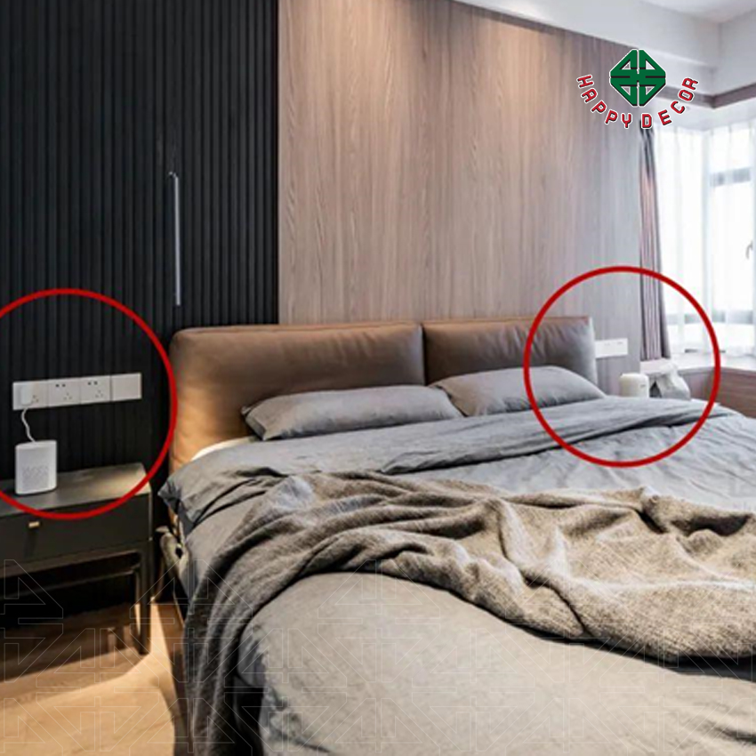 Công tắc phòng ngủ: Giường đơn 1 bên đầu giường + cửa 2 điều khiển, giường đôi trải 2 bên + cửa 3 điều khiển.