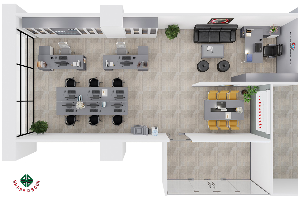 Happy Decor với kinh nghiệm thiết kế nội thất văn phòng từ năm 2010 và kinh nghiệm thi công nội thất từ năm 2005, am hiểu về phong thủy, làm việc đam mê, nhiệt huyết và có trách nhiệm, Happy Decor sẽ giúp bạn không những thiết kế văn phòng của bạn hợp phong thủy, đẹp mà chúng tôi còn là chuyên gia về không gian, chúng tôi sẽ giúp bạn tính toán mức độ, khoảng cách di chuyển trong văn phòng sao cho hợp lý nhất, tới từng cm.