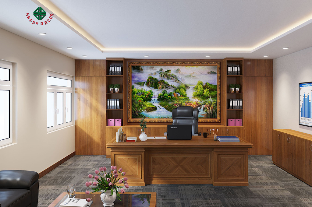 Mẫu thiết kế phòng làm việc giám đốc gỗ tự nhiên – phong cách tân cổ điển