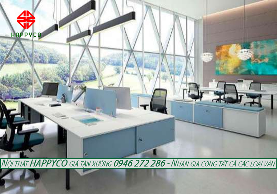 Công ty Happyco cung cấp các thiết bị, đồ nội thất dùng cho văn phòng như bàn, ghế, kệ tủ, hệ thống đèn chiếu sáng,…