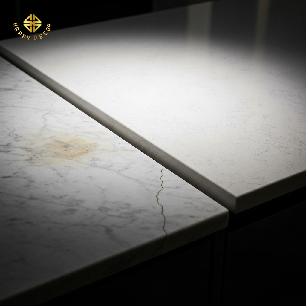 Giải pháp: Sử dụng Đá Nhân Tạo Gốc Thạch Anh (Quartz) hoặc Đá Nhân Tạo Solid Surface.