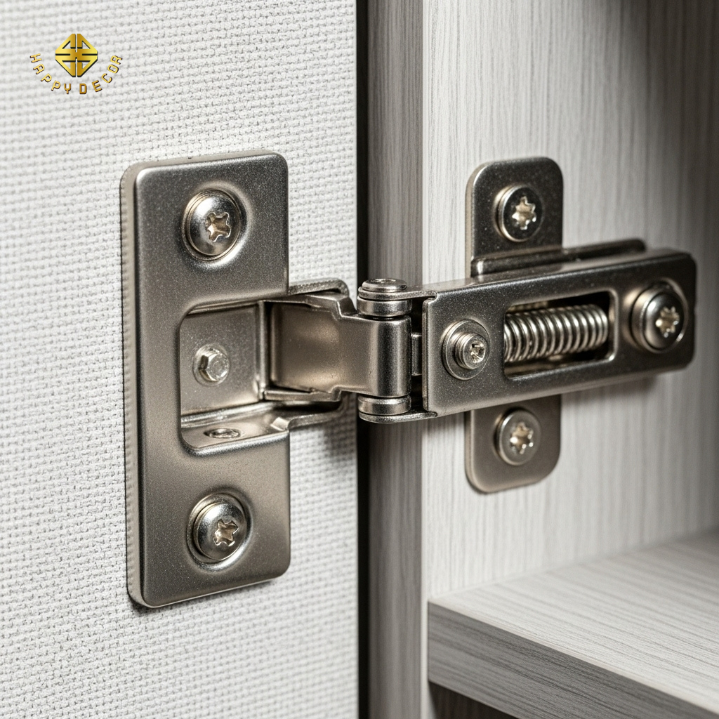 Đây là hạng mục bạn tuyệt đối không nên tiết kiệm. Bản lề và ray ngăn kéo là thứ hoạt động hàng nghìn lần mỗi năm, chịu tải lực của cả cánh tủ gỗ nặng nề.