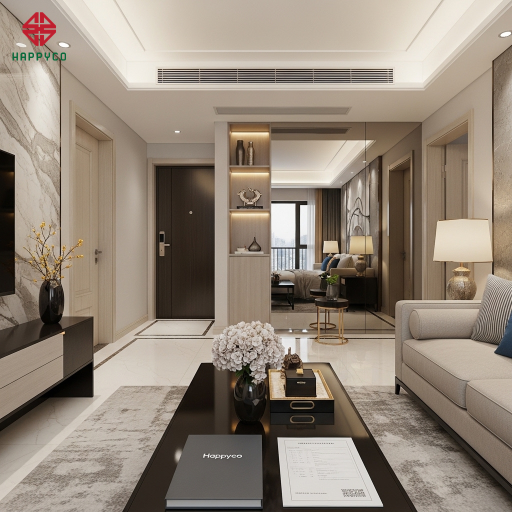 Cảm xúc thực tế: Khi bước vào căn hộ do Happyco thi công, bạn sẽ cảm nhận được độ "lỳ" của bề mặt gỗ, độ bóng của đá và sự mịn màng của vải thảm – những thứ mà bản vẽ 3D chỉ có thể mô phỏng một phần.