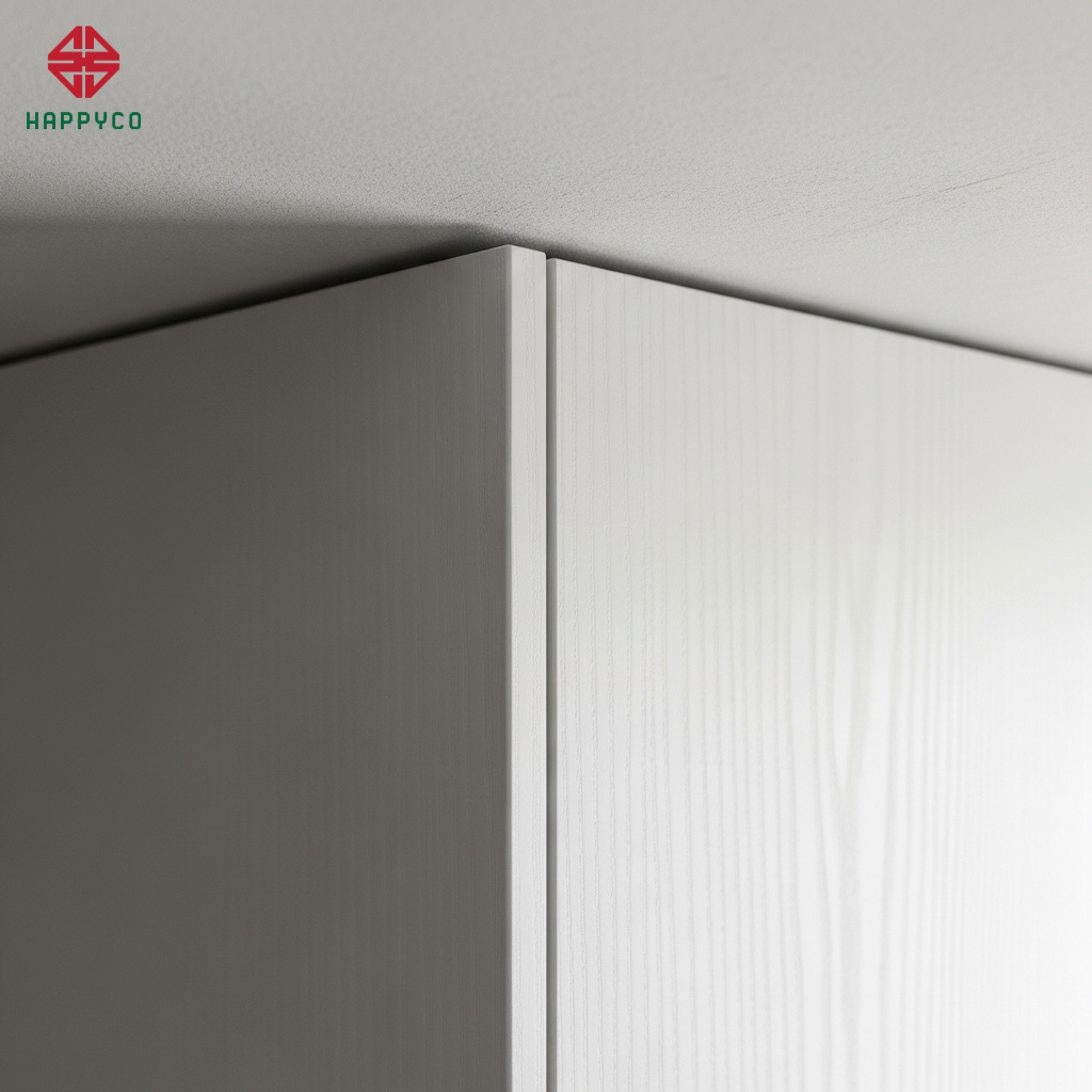 Mối nối Seamless: Chúng tôi xử lý các điểm giao giữa trần, tường và tủ bằng kỹ thuật thợ lành nghề, đảm bảo không một khe hở dù là nhỏ nhất. Hệ tủ kịch trần tại Happyco luôn phẳng lỳ như một bức tường kiến trúc.