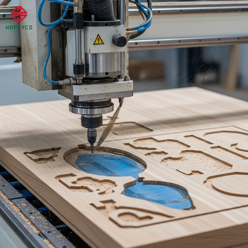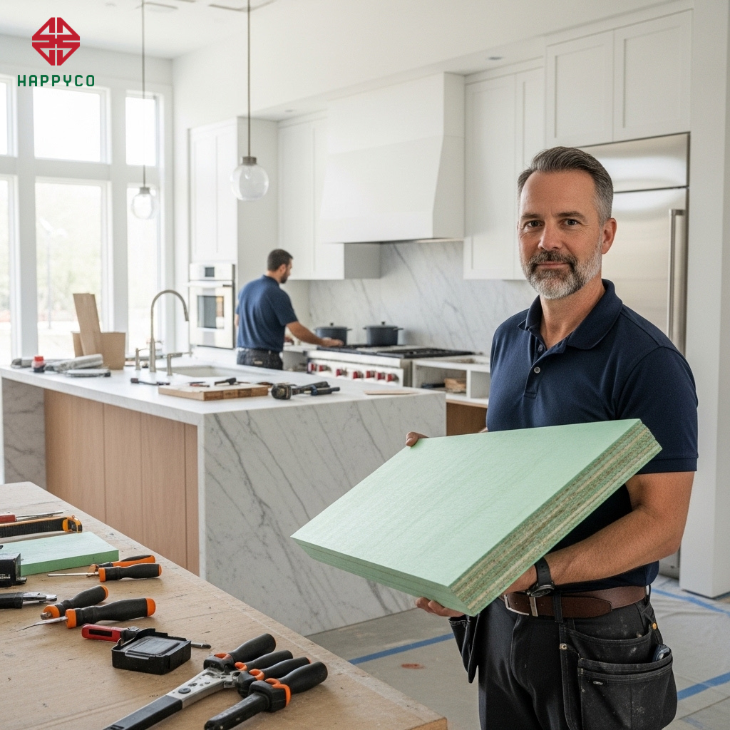 Gia công tự động: Tại xưởng sản xuất, các tấm ván HMR lõi xanh được cắt và khoan lỗ bằng hệ thống máy CNC trung tâm. Công nghệ này đảm bảo mọi chi tiết liên kết đều chính xác tuyệt đối, giúp việc lắp ráp tại công trình diễn ra nhanh chóng và chuẩn form như mô hình lắp ghép.