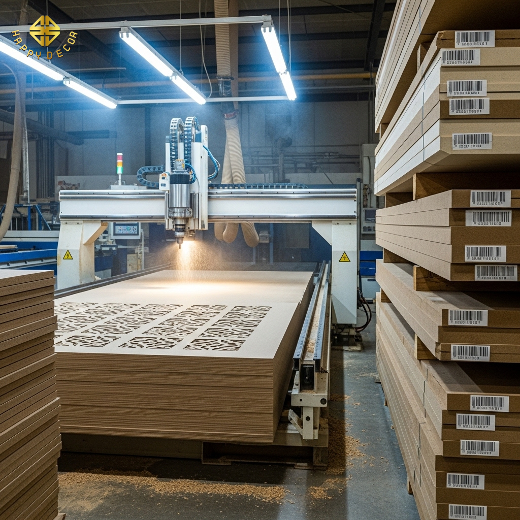 Mọi sai số trong thi công thường bắt nguồn từ việc đo đạc thủ công và cắt ván bằng tay. Tại Happy Décor, quy trình này được "số hóa" hoàn toàn.