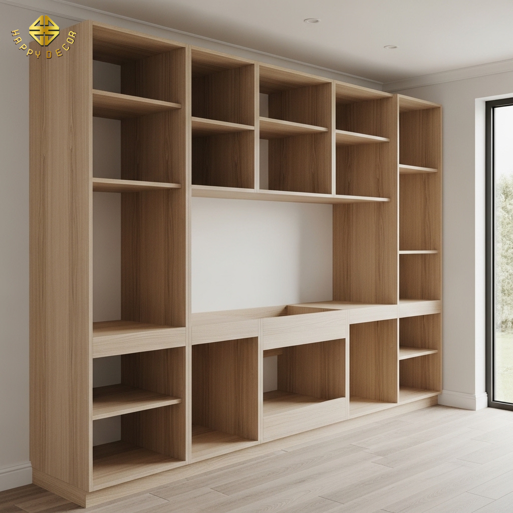 Đầu tư vào "xương sống": Những hệ tủ liền tường là thứ bạn sẽ dùng trong 10-20 năm. Sử dụng cốt ván HMR lõi xanh chuẩn Super E0 là một khoản đầu tư tiết kiệm dài hạn. Nó giúp bạn tránh được chi phí sửa chữa, thay mới do ẩm mốc hay xệ cánh tủ sau vài năm sử dụng.