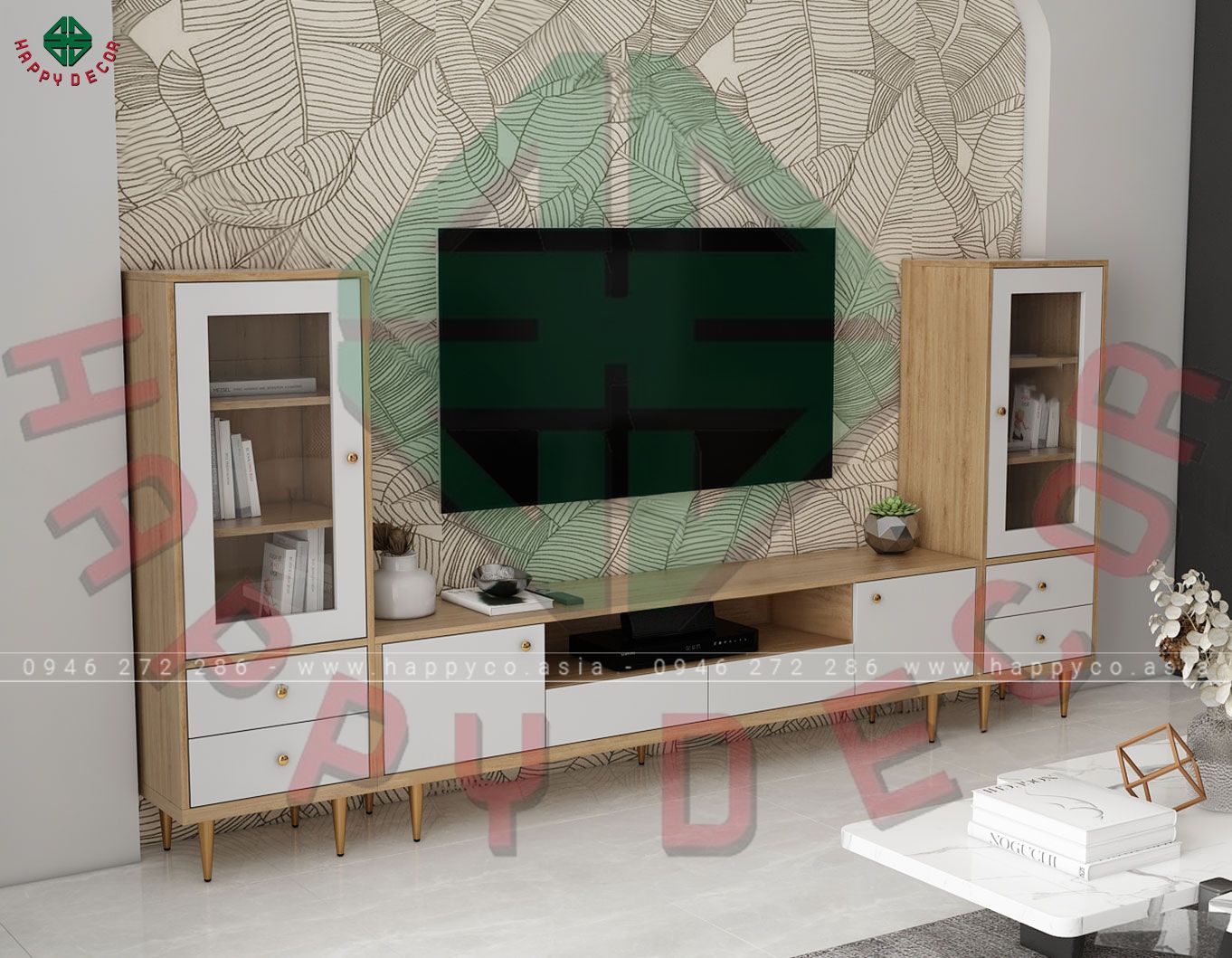 Được thiết kế theo kiểu module độc lập, gia chủ có thể tùy biến theo không gian nhà mình để đặt tủ sao cho tổng thể nội thất hài hòa nhất. Kệ được tích hợp thêm nhiều ngăn kéo, và các ô, kệ mở để tối ưu diện tích lưu trữ đồ đạc trong nhà. Gia chủ có thể trang trí phòng khách thêm sinh động bằng những cuốn sách, chậu cây cảnh, đồ lưu niệm, … mà không cần tốn thêm chi phí để mua tủ trưng bày.