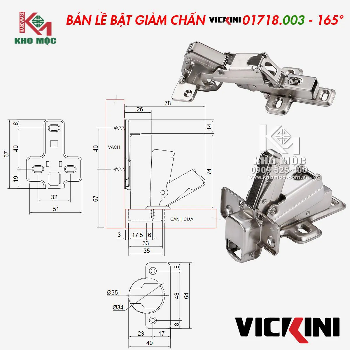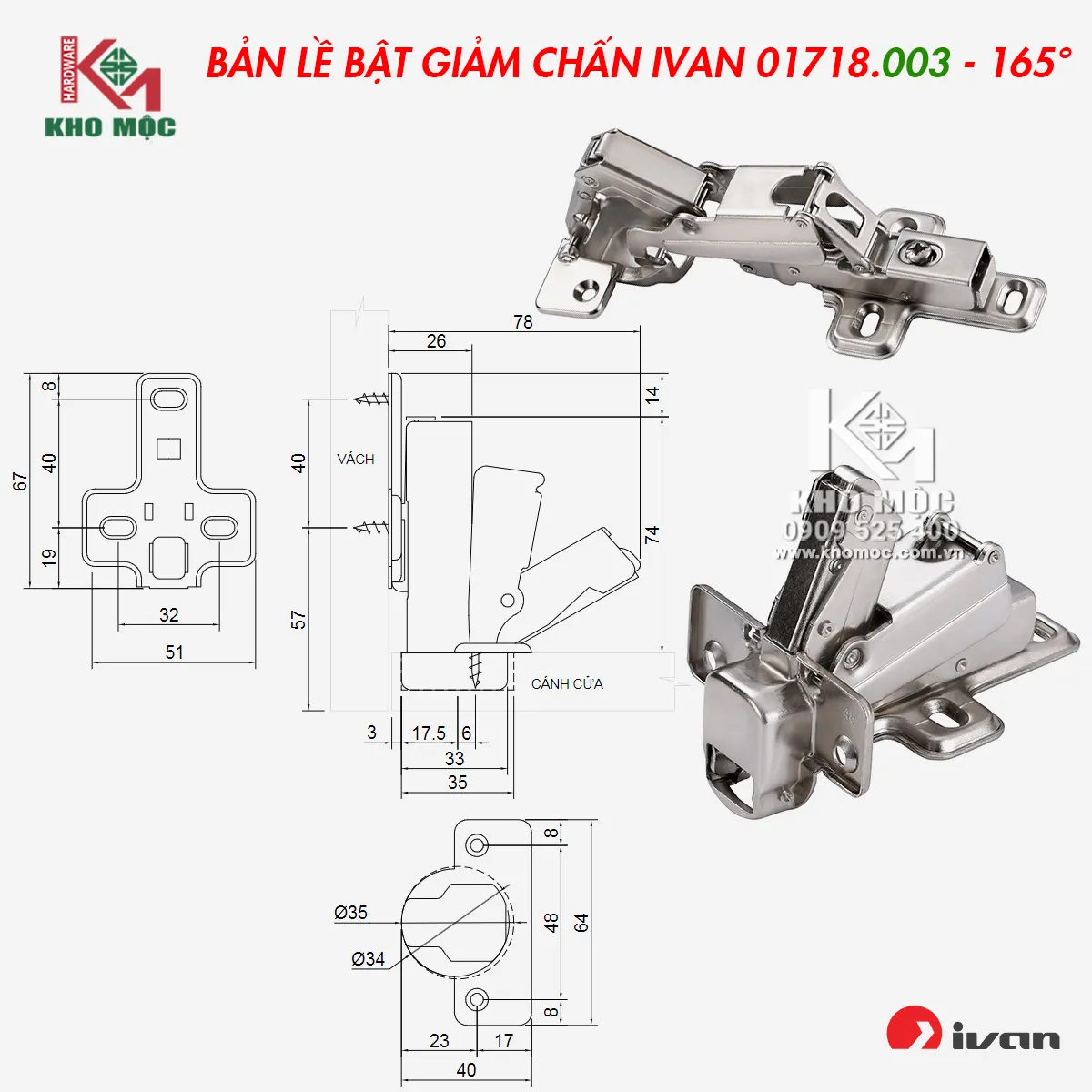 BẢN LỀ BẬT GIẢM CHẤN IVAN 01718 - 165°
