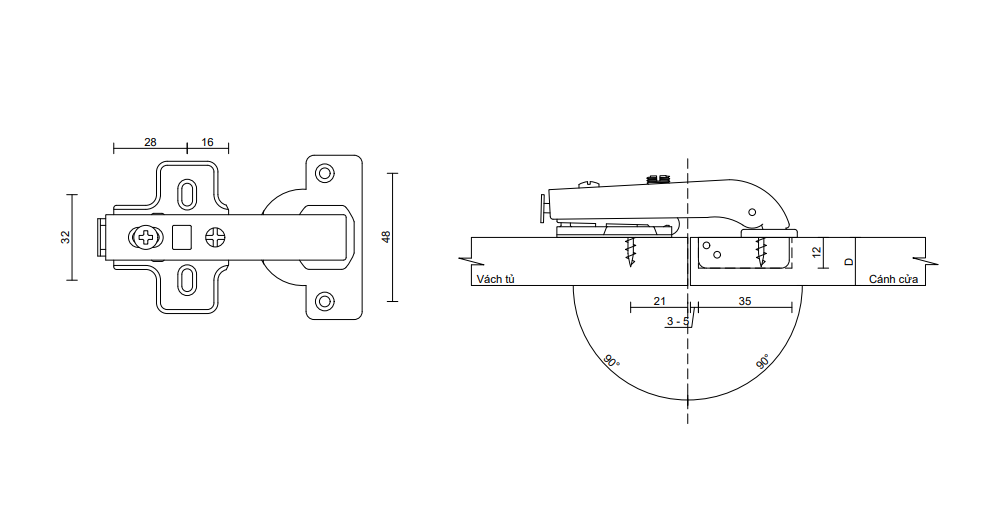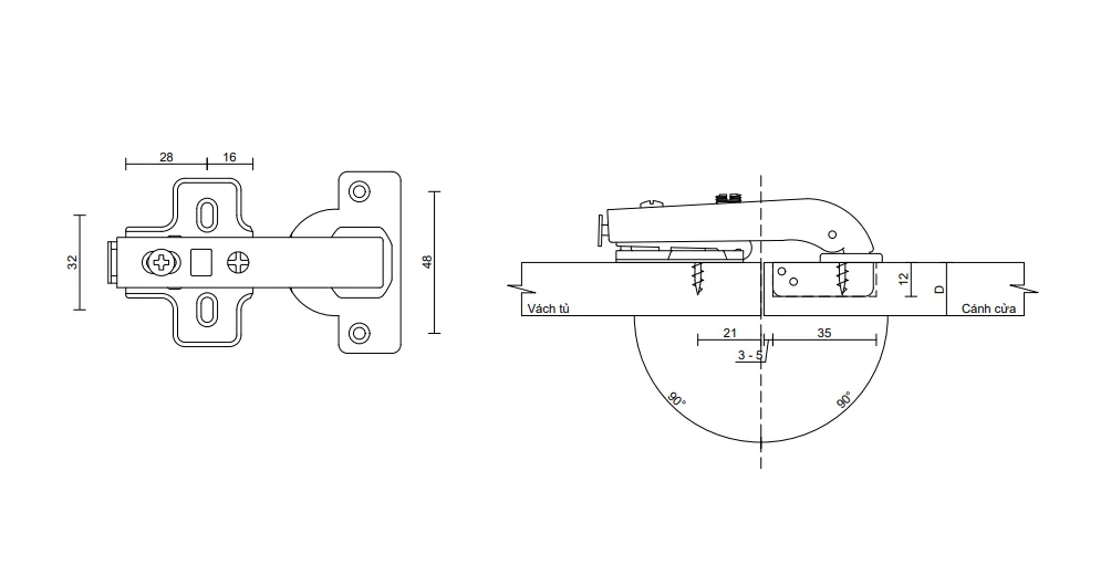 Bản lề 90 độ giảm chấn VICKINI 01708.001 NP