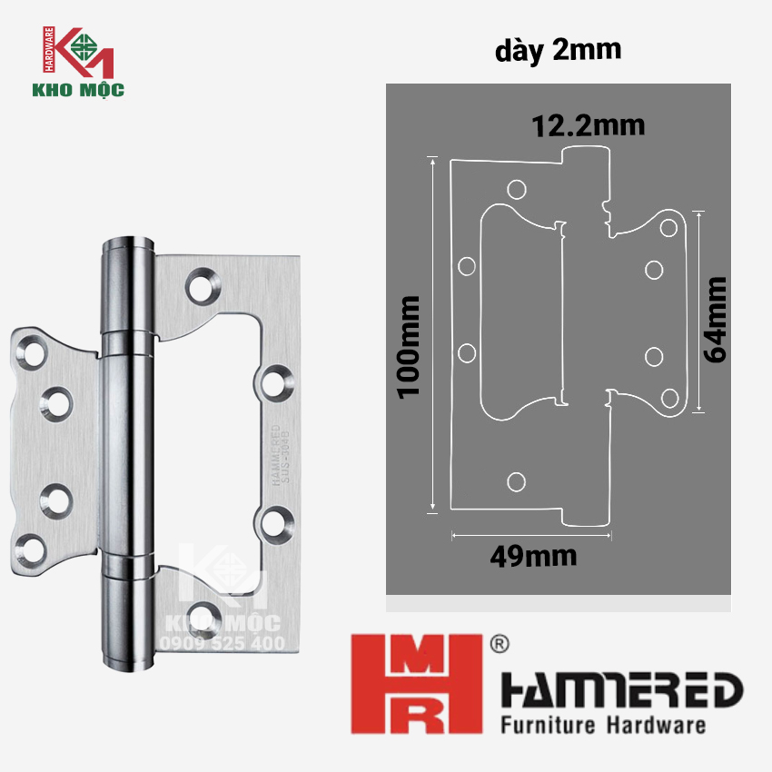 BẢN LỀ CỬA ÂM DƯƠNG, DÀI 10CM DÀY 2MM INOX MỜ HMR /AD 432SS_201
