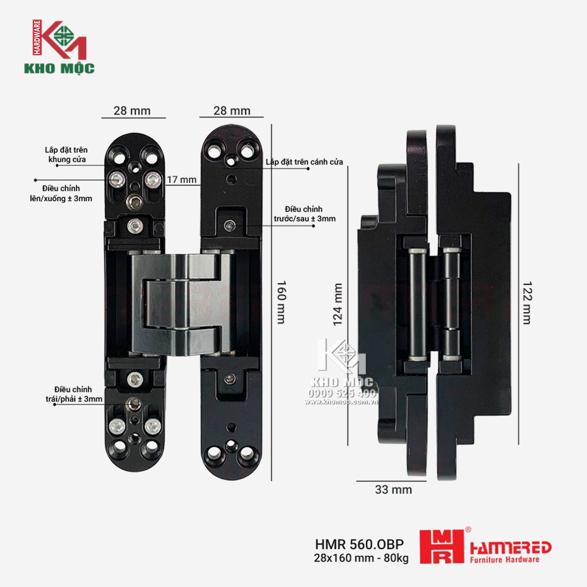 Bản Lề Chữ Thập HMR 560.160OBP 28x160mm 80kg Đen Mờ
