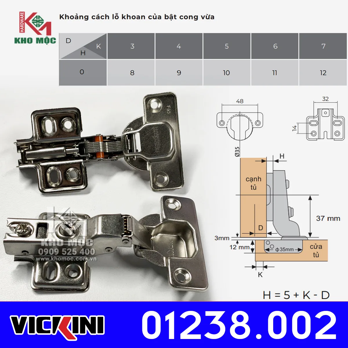 Bản Lề Giảm Chấn 01238 VICKINI ( Bịch 2 cái )