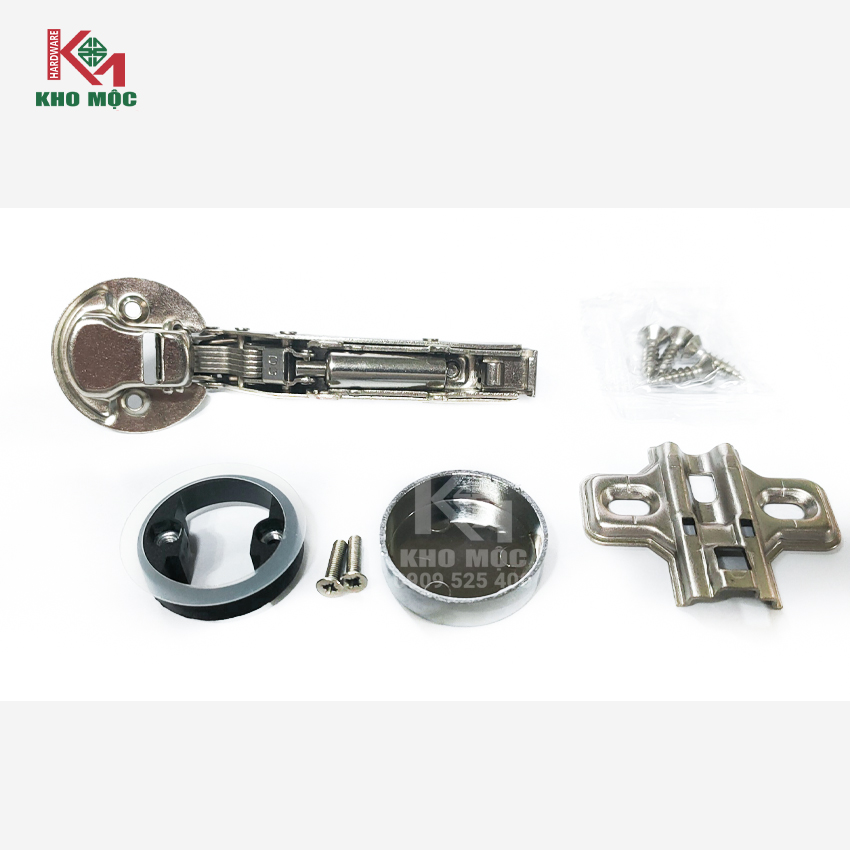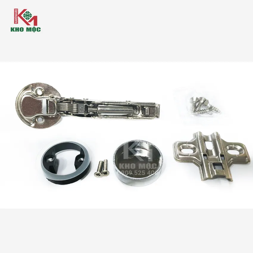 - Được cấu tạo gồm thân bản lề, đế bản lề có lỗ bắt vít và cốc cao su.