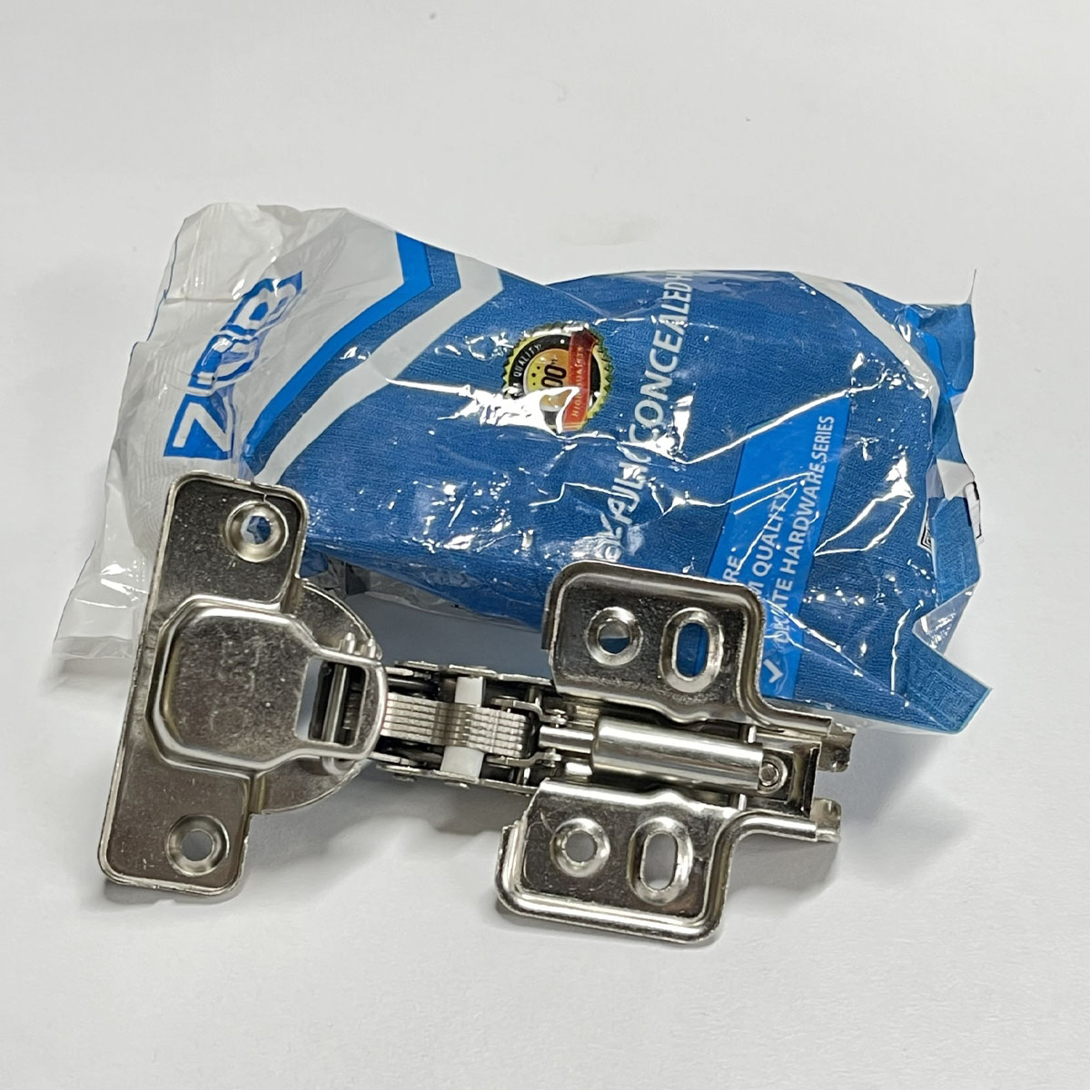 - Bản lề bật cong Khi lắp ráp cánh tủ sẽ che một nửa độ dày của cạnh tủ, khoảng cách từ thành tủ đến vít điều chỉnh là 23mm (hay còn gọi là trùm nửa)