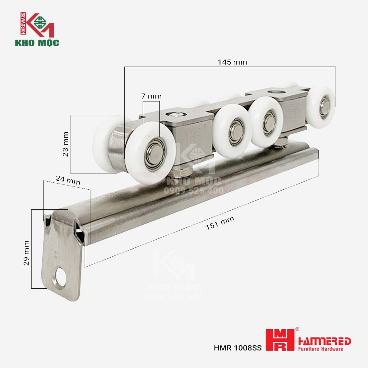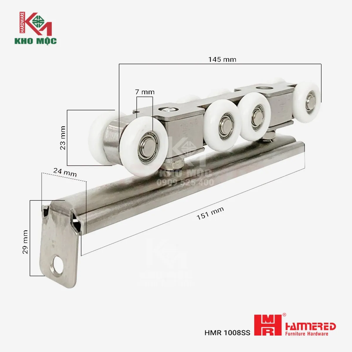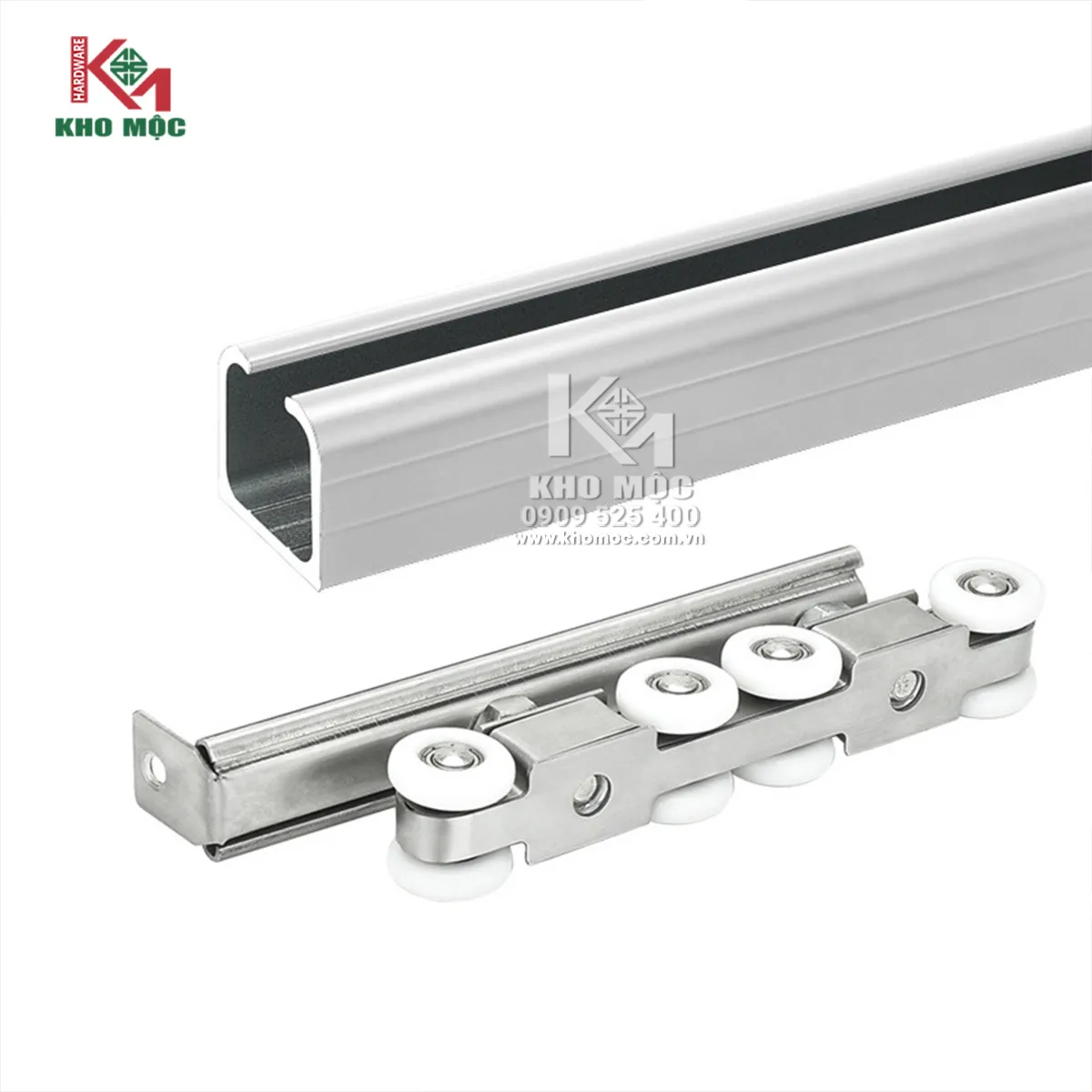 BỘ BÁNH XE LÙA CỬA 8 BÁNH 1008SS HMR INOX & RAY LÙA