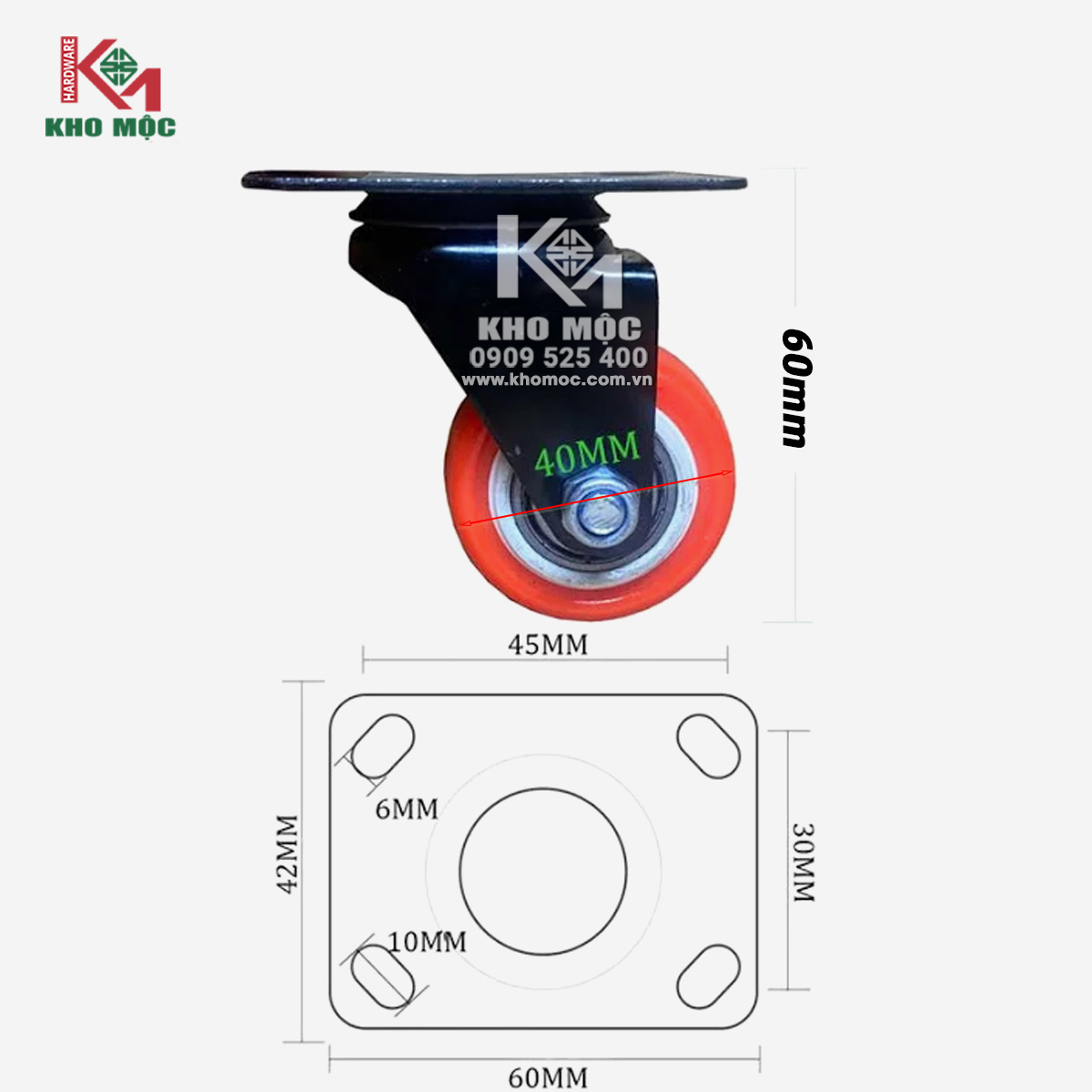 - Lốp nhựa PU chịu lực, chống mài mòn, chống nước và hóa chất tốt.