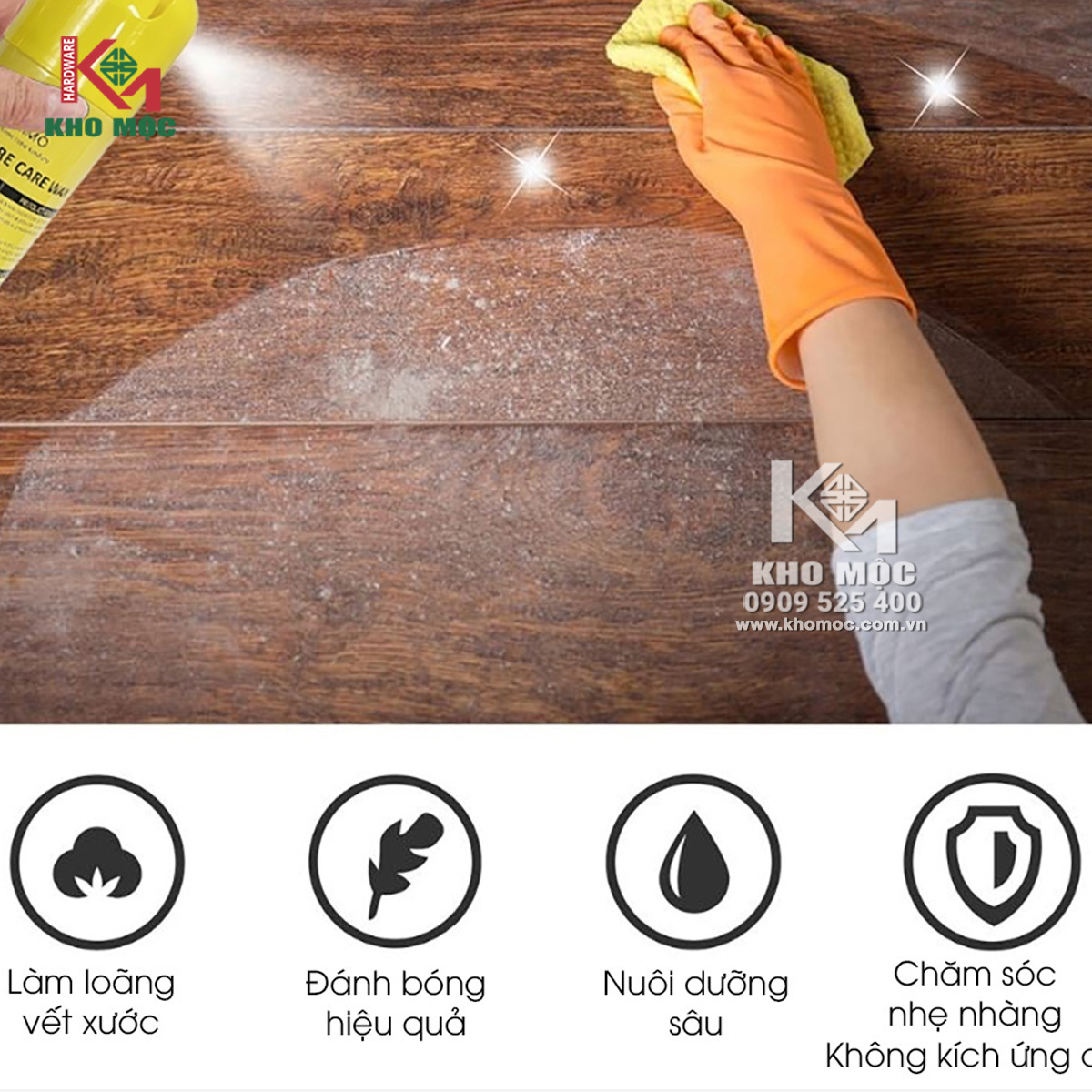 Dễ dàng làm sạch bụi bẩn. Sử dụng an toàn trên các bề mặt gỗ; da; sơn mài.