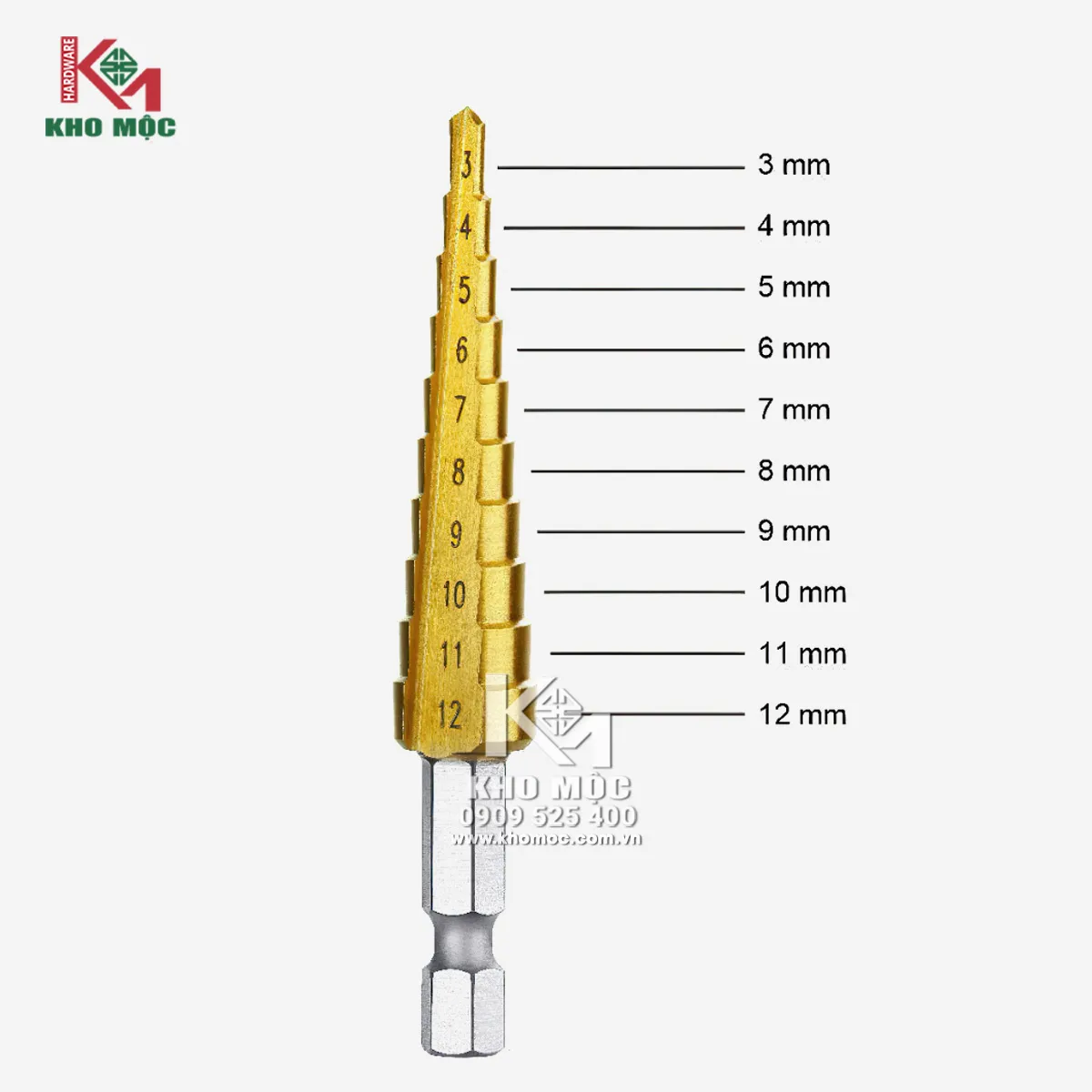 + Mũi 4-12 gồm: 4, 5, 6, 7, 8, 9, 10, 11, 12mm