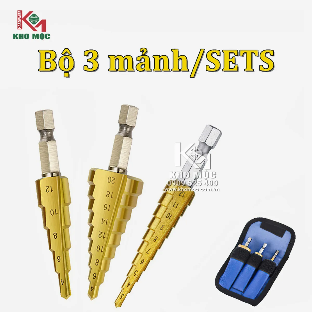Bộ Mũi khoan bước rãnh thẳng phủ Titan chuôi lục giác làm bằng thép gió HSS phủ titan chuyên khoan gỗ, đồng, nhôm, sắt,tôn...
