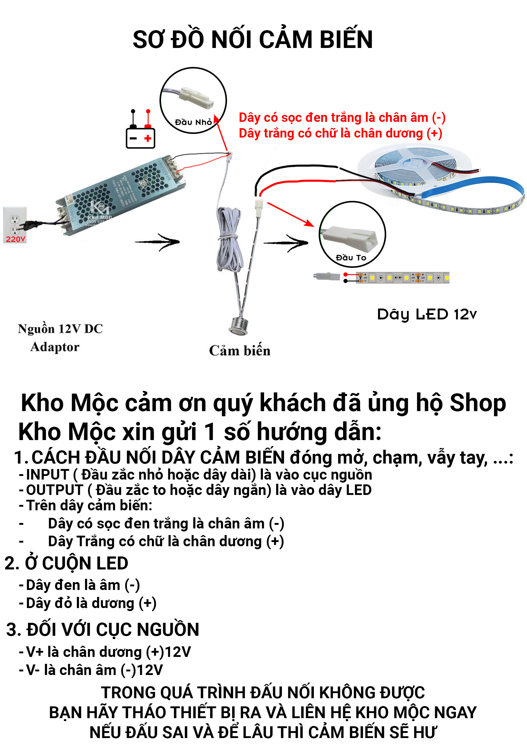Ứng Dụng : lắp đặt khu bếp, rửa bát, tủ rượu, tủ trang trí, khu vực dử dụng led dây, led thanh dùng nguồn 12V. *