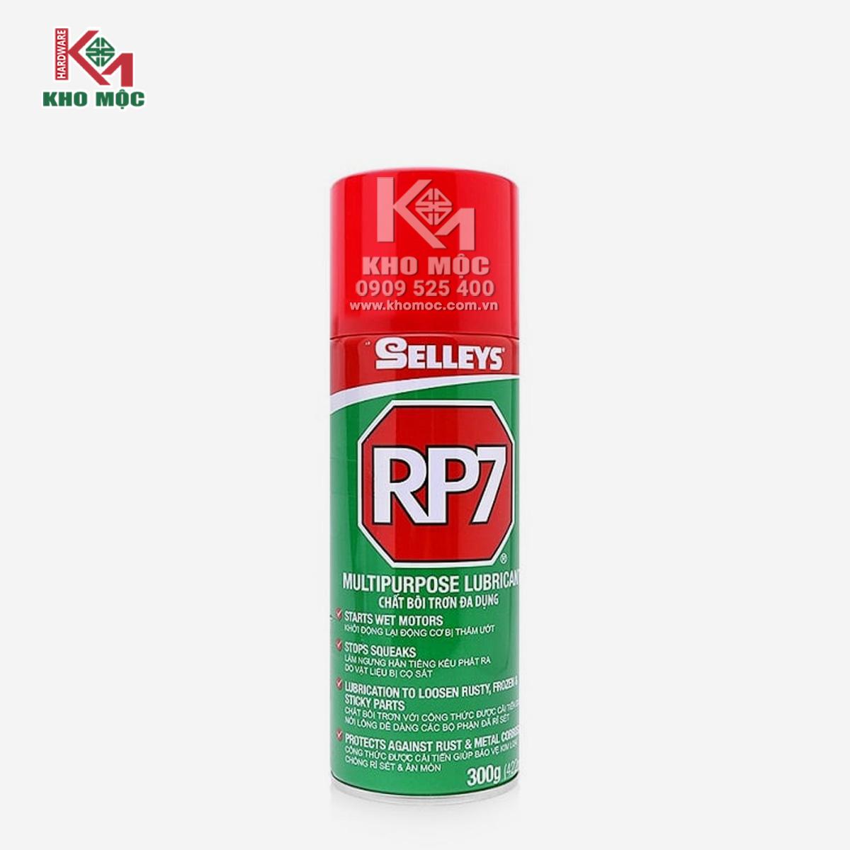 Chai xịt chống rỉ sét Selleys RP7 300g giúp làm trơn và chống rỉ sét, giúp tháo gỡ các bộ phận rỉ sét, bôi trơn các bộ phận chuyển động, động cơ khó khởi động…