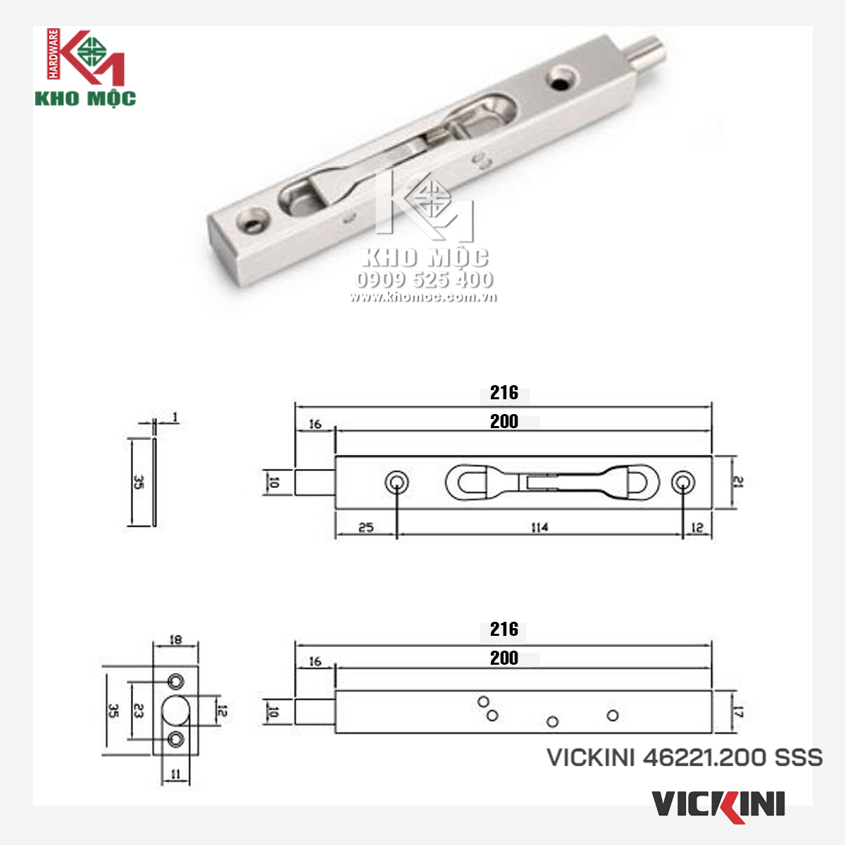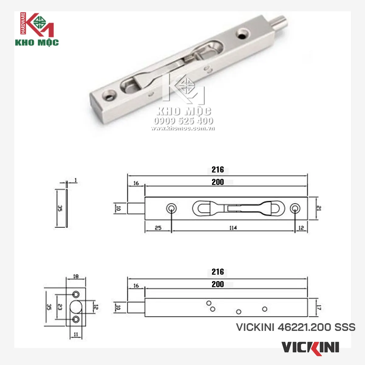 Thông tin chi tiết sản phẩm chốt âm cửa gỗ Vickini 46221.200 SSS:1