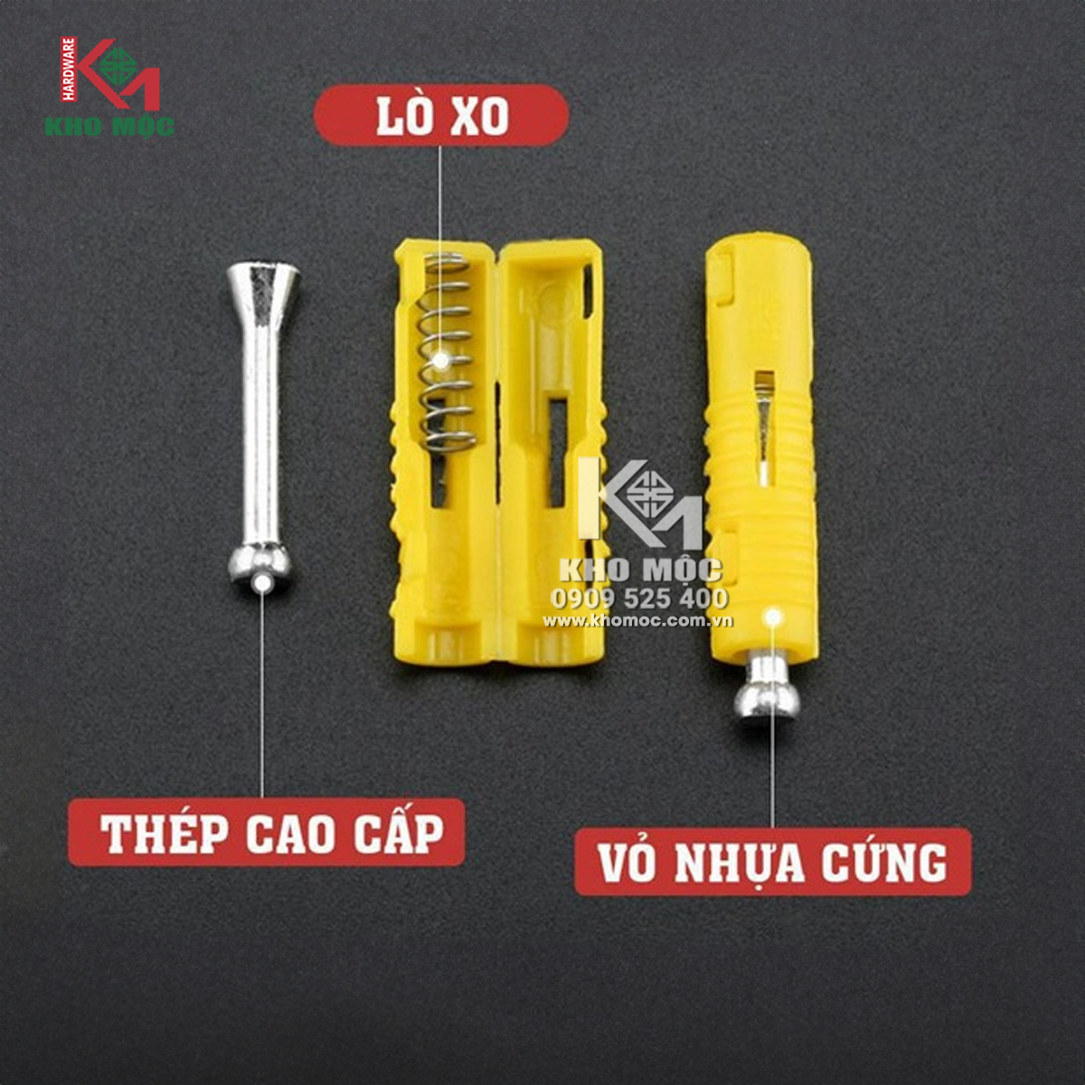 Sản phẩm này bao gồm hai phần: chốt nhựa và bas sắt.