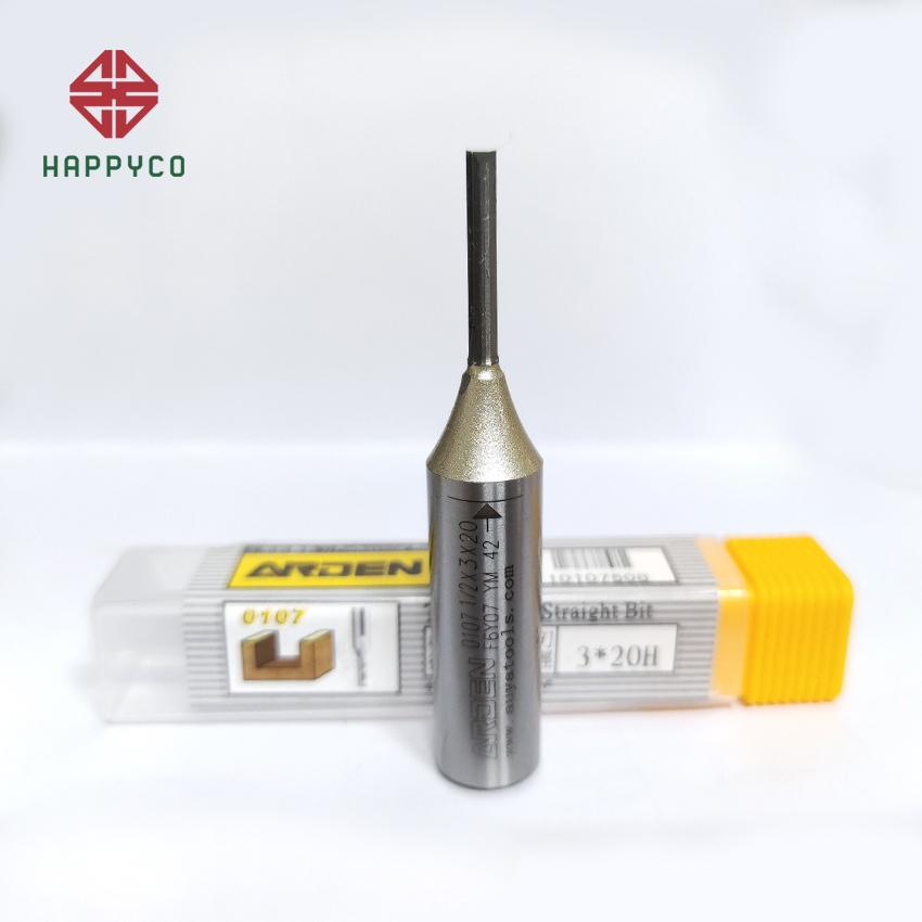Dao CNC 3*20 chính hãng ARDEN loại 3 lưỡi thẳng có rãnh thoát phoi chuyên dùng cắt phá, cắt slot, cut profile các loại gỗ từ gỗ tự nhiên đến gỗ công nghiệp hàng chính hãng ARDEN có 1 loại thân dao là 1/2" (12.7mm) các loại đường kính mũi dao 6mm và 8mm loại phổ biến nhất là loại có đường kính mũi 3*20 (chiều dài lưỡi cắt)