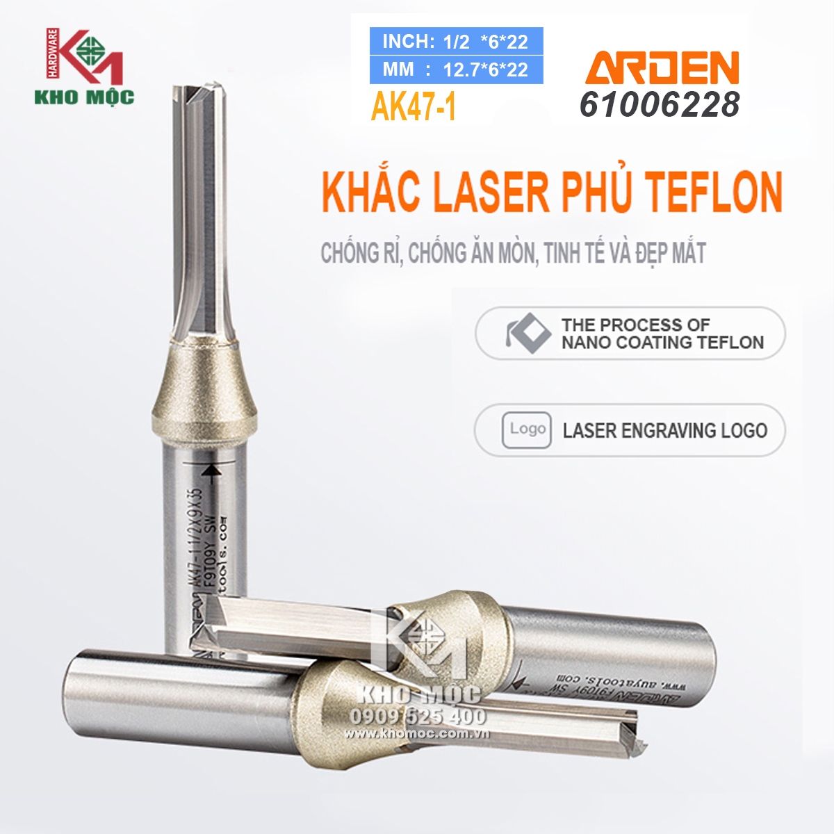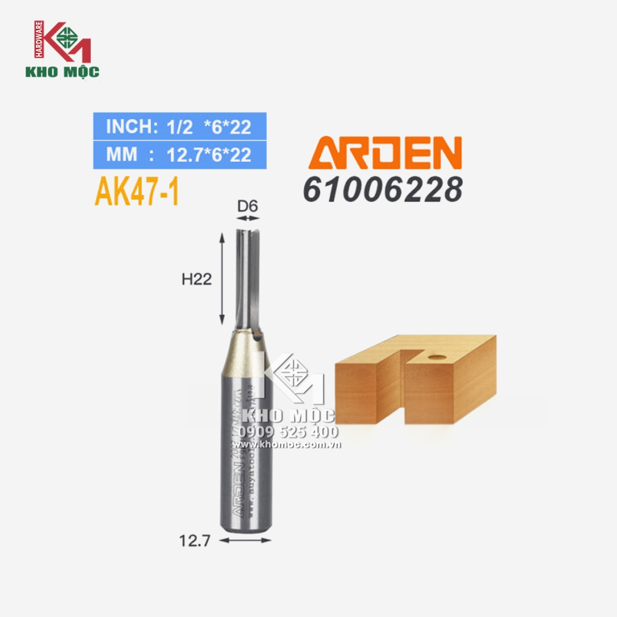 Dao CNC 6*22*3T AK47-1 chính hãng ARDEN (Không rãnh thoát phôi) loại 3 lưỡi thẳng không có rãnh thoát phôi chuyên dùng cắt phá, cắt slot, cut profile các loại gỗ từ gỗ tự nhiên đến gỗ công nghiệp hàng chính hãng ARDEN đường kính mũi 6*22*3T (chiều dài lưỡi cắt)