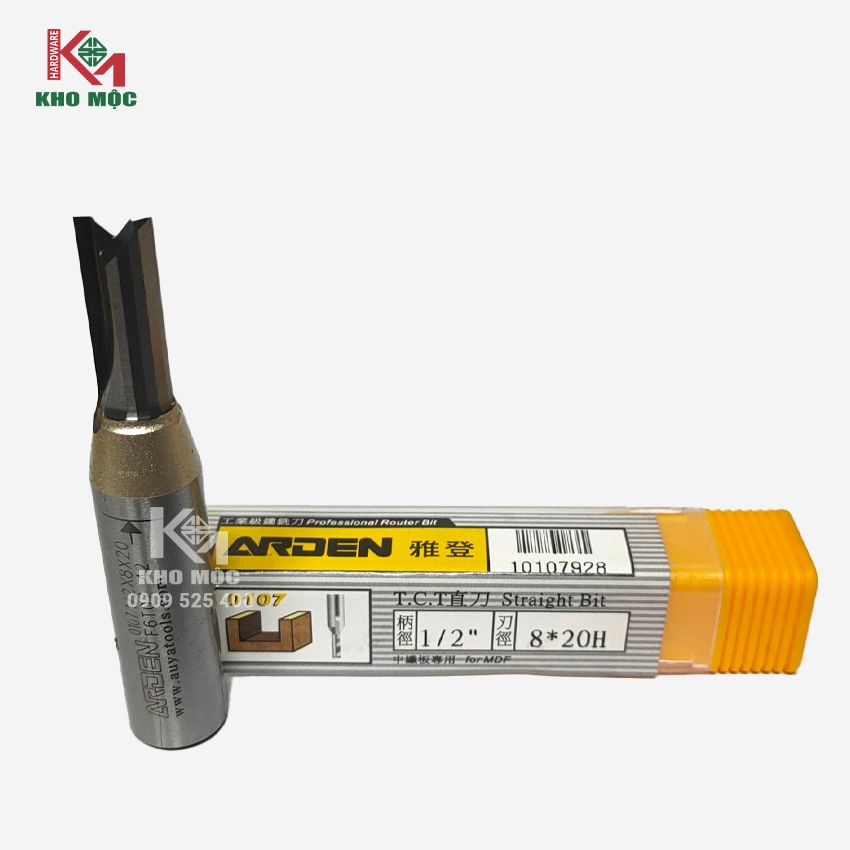 Dao CNC 8*20*2T chính hãng ARDEN loại 3 lưỡi thẳng có rãnh thoát phoi chuyên dùng cắt phá, cắt slot, cut profile các loại gỗ từ gỗ tự nhiên đến gỗ công nghiệp hàng chính hãng ARDEN đường kính mũi 8*20*3T (chiều dài lưỡi cắt)