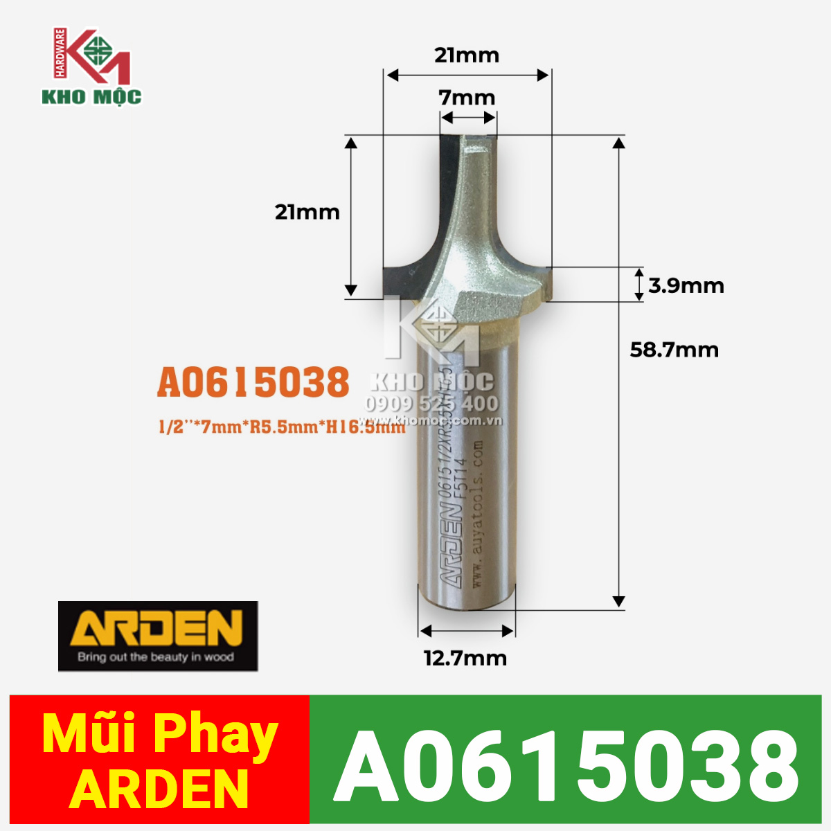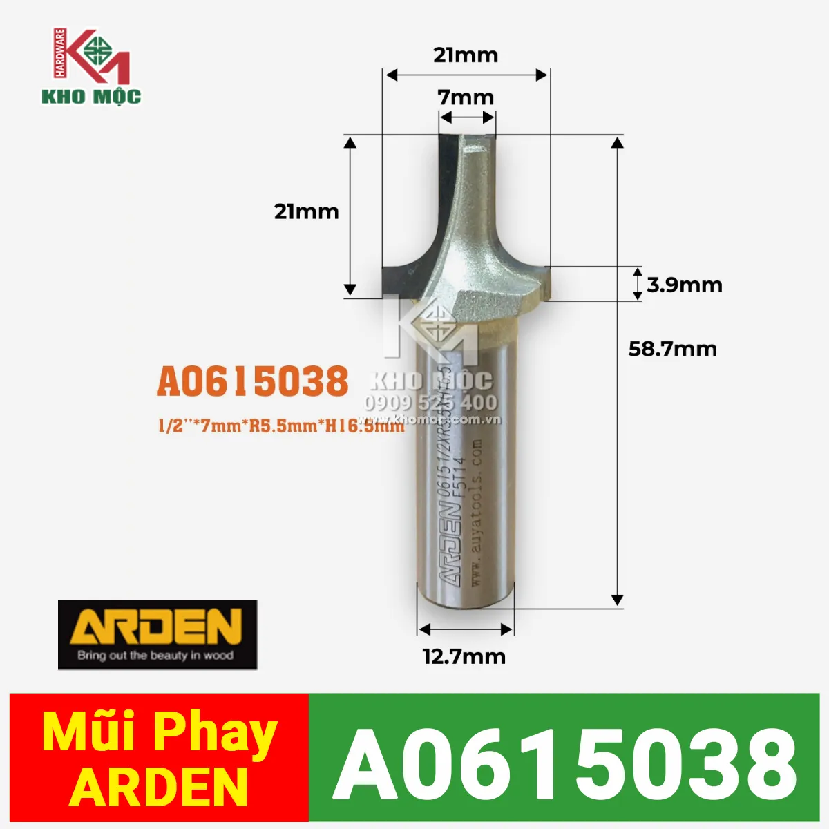 Mũi phay CNC gỗ vát cạnh ngoài R dao bo viền huỳnh ván cửa Arden A0615038