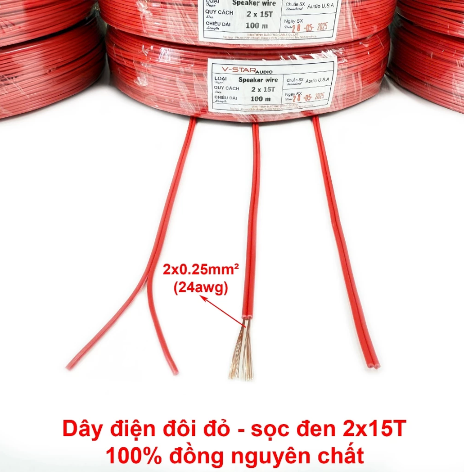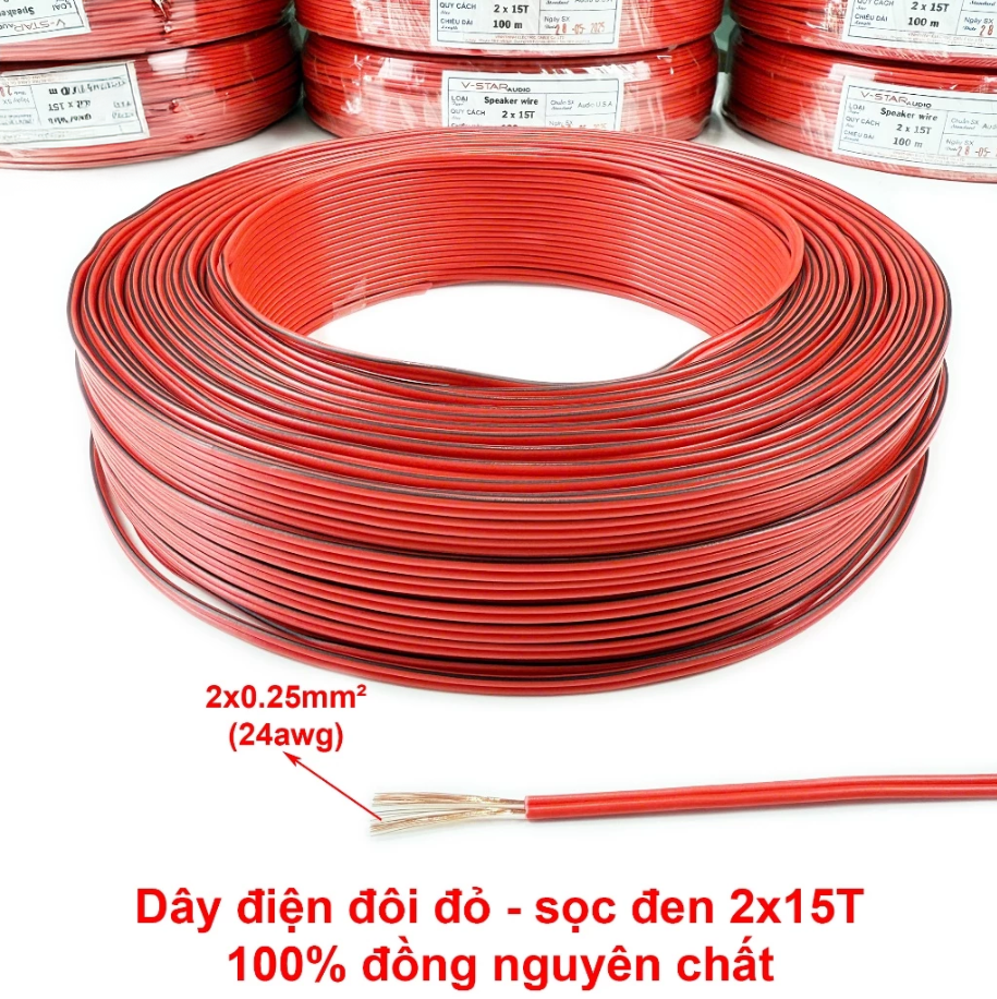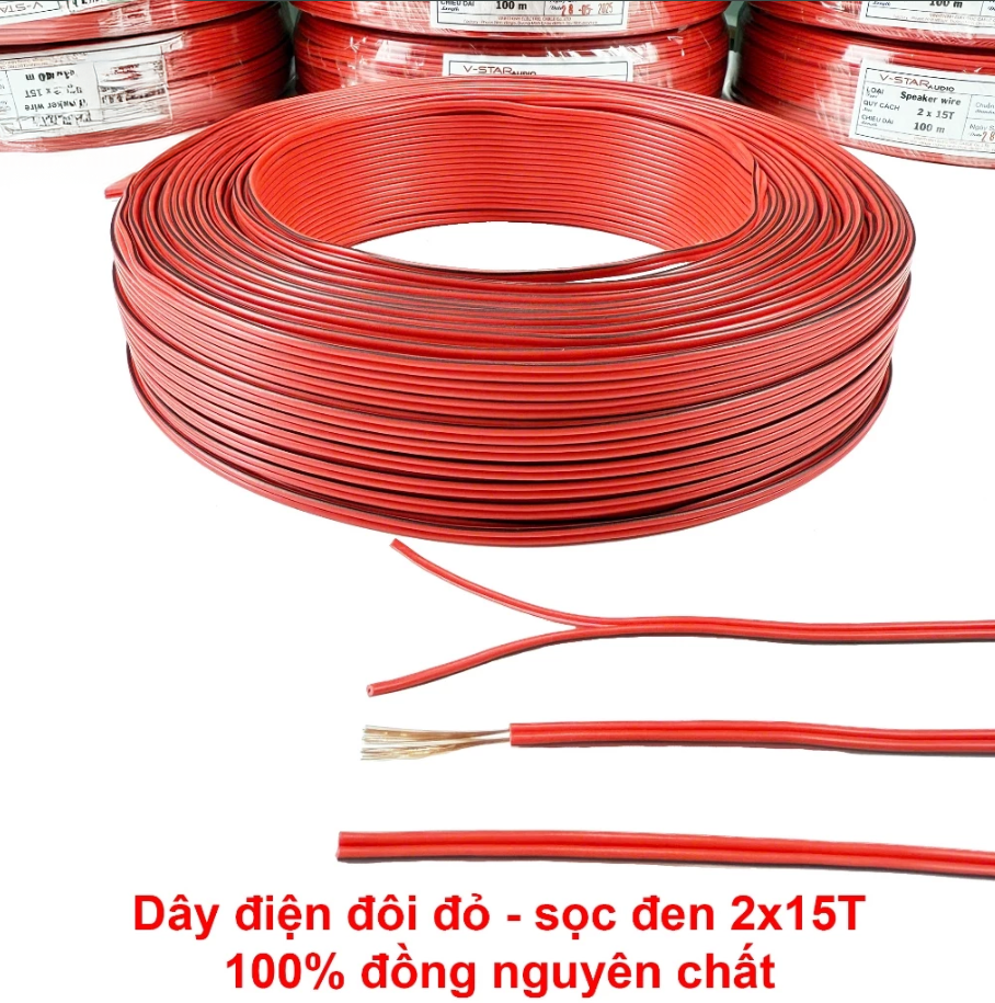 Dây Điện Đôi V-Star USA Lõi Đồng 100% Đỏ Đen 2x15