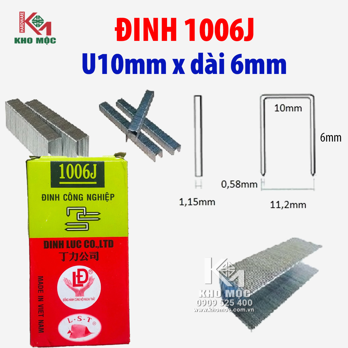 Đinh công nghiệp cao cấp - Đinh U - Đinh ghim 1006J - 1008J - 1010J - 1013J - Hộp 5000 đinh thép mạ kẽm
