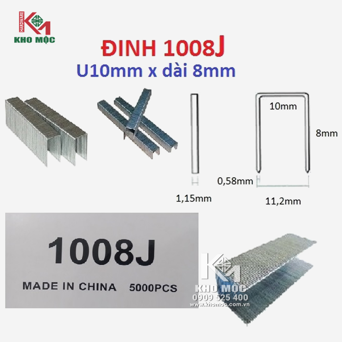️ Loại trung bình 1008J: Chiều ngang 10mm, chiều sâu 8mm tương tự như đinh 1006J