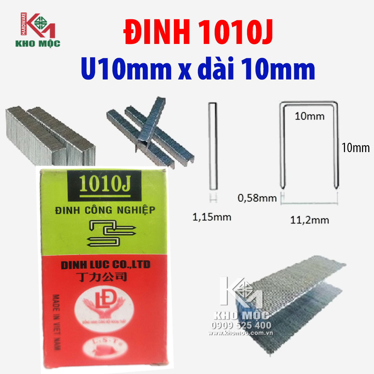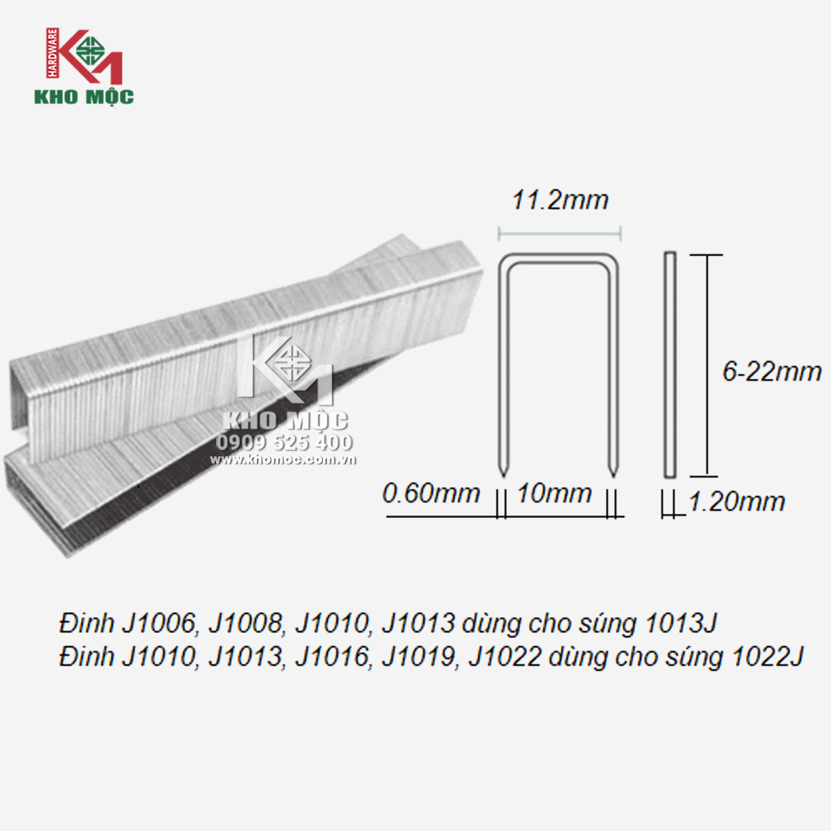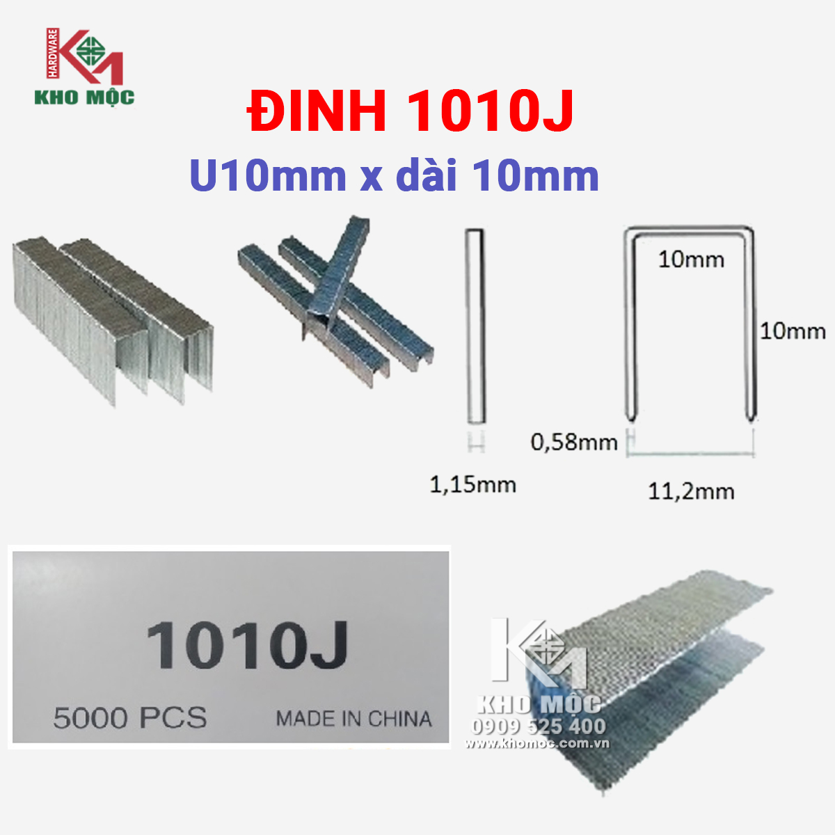 ️ Loại trung bình 1010J: Chiều ngang 10mm, chiều sâu 10mm phù hợp với những công việc yêu cầu ghim chặt, chắc chắn.