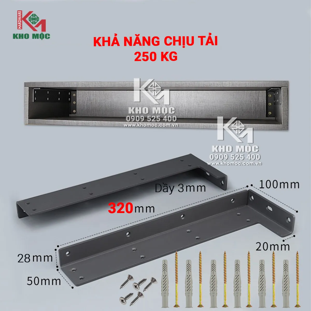 -Chịu tải tối đa 100kg/ cặp. Có thể sử dụng thêm giá đỡ nếu muốn tải trọng lớn hơn. Tất cả các giá đỡ chữ L được đóng gói riêng để để tránh bất kỳ vết xước nào trong quá trình vận chuyển.