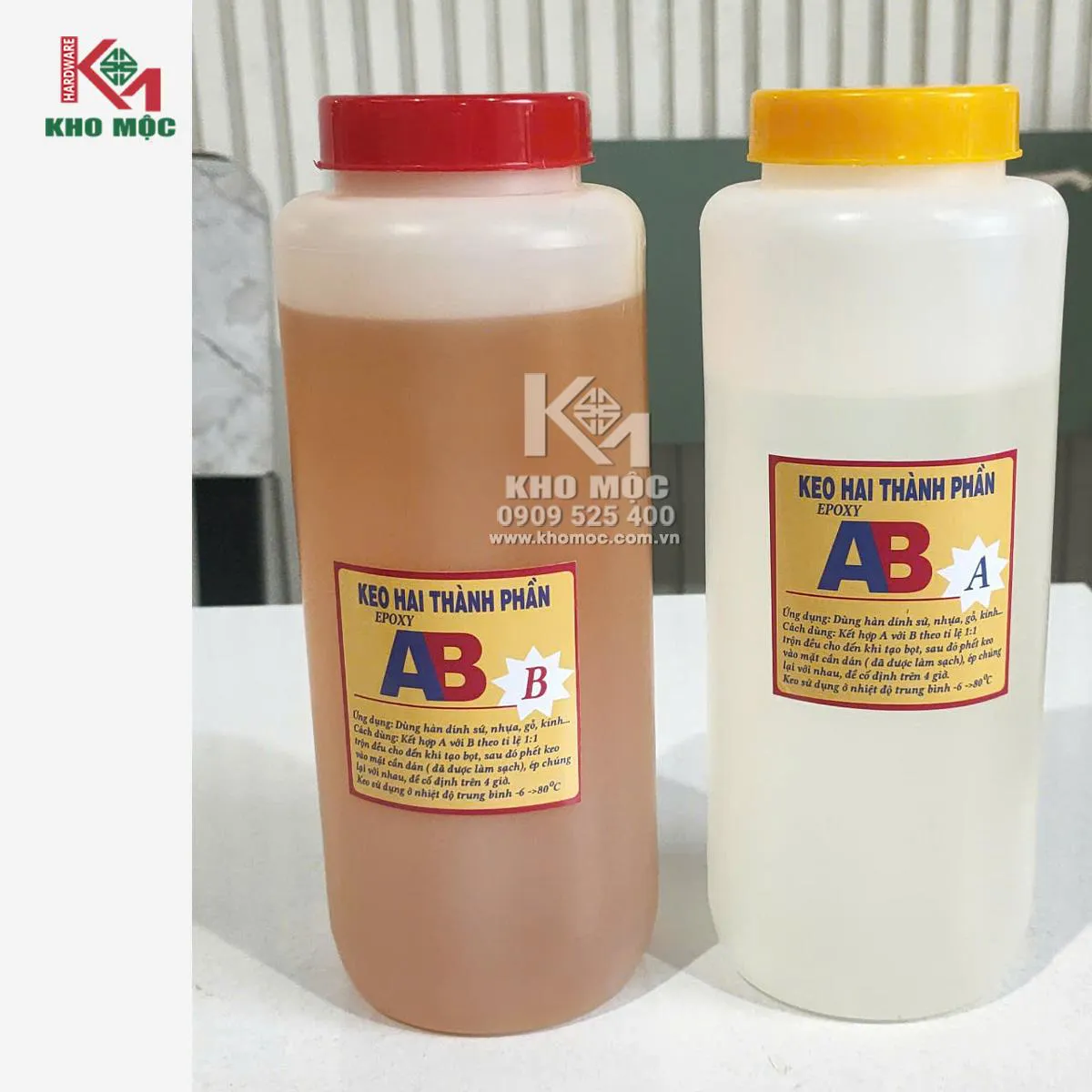 Keo này có ưu điểm độ kết dính cao, chịu tác động va đập mạnh, chống thấm, chống lão hóa ăn mòn. Vật liệu sử dụng rộng rãi trong ngành công nghiệp, xây dựng và dân dụng. Tỉ lệ pha trộn của Keo AB là 1A+1B. Tỉ lệ pha trộn của Keo Epoxy là 5 Keo+1 Hóa.