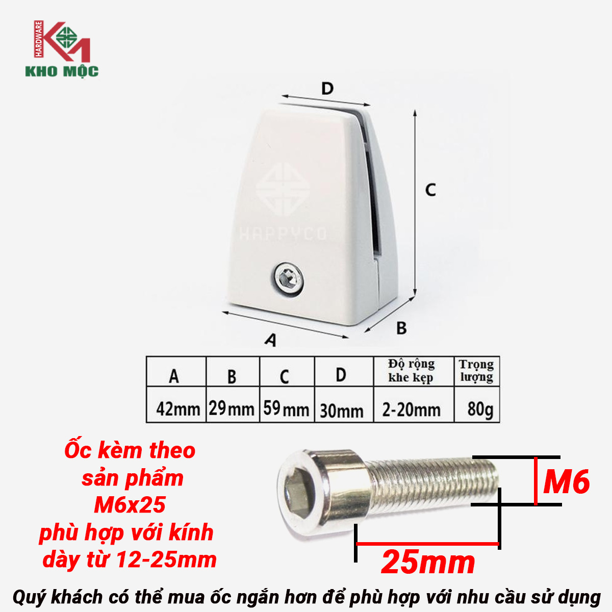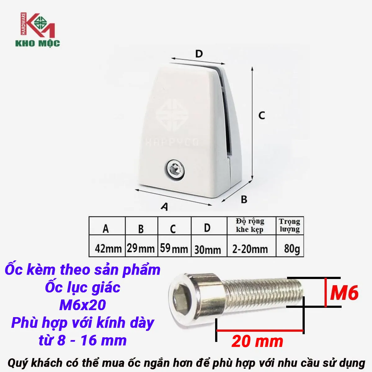 hoặc M6x20 ( phù hợp với kính dày từ 8 - 16mm )