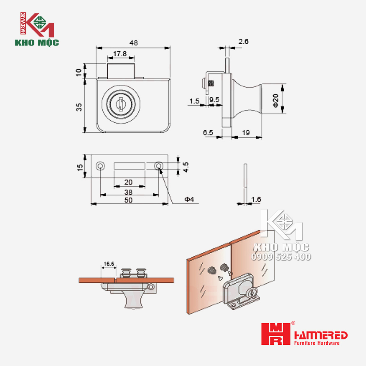 Thông tin chung về khóa tủ kính đôi HMR 409