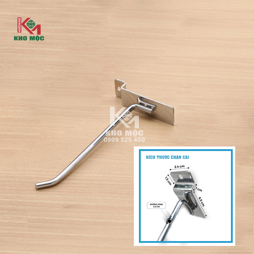 Móc treo đồ đơn cài tấm gỗ 20cm gồm có các thành phần sau: