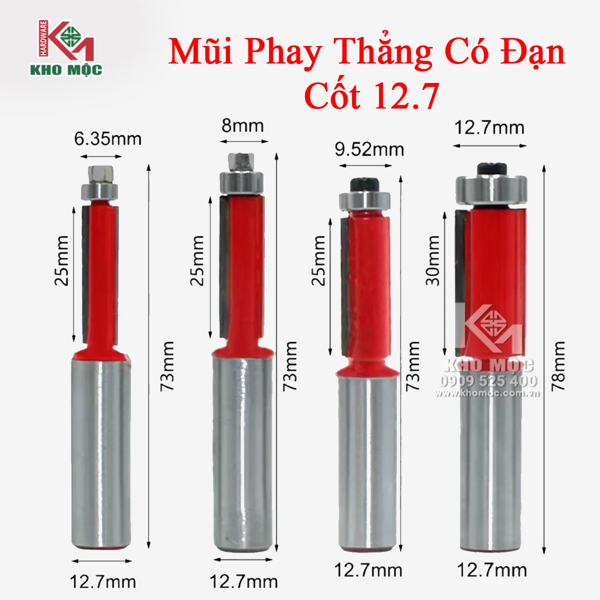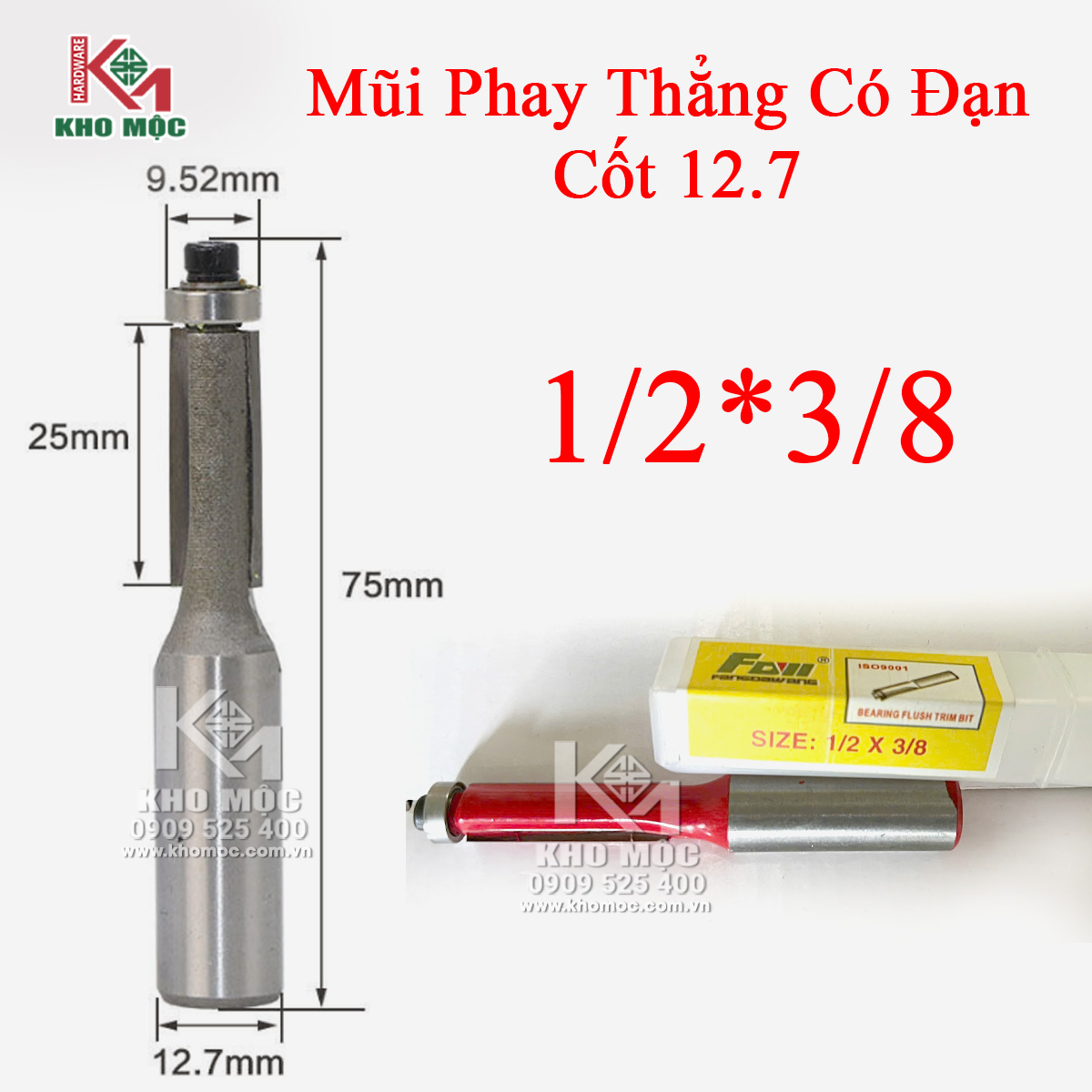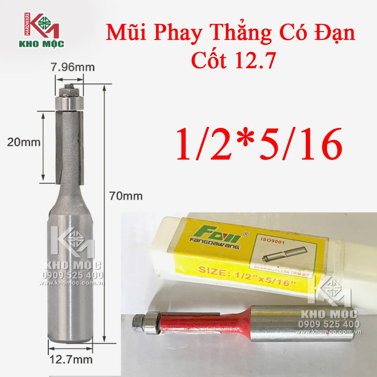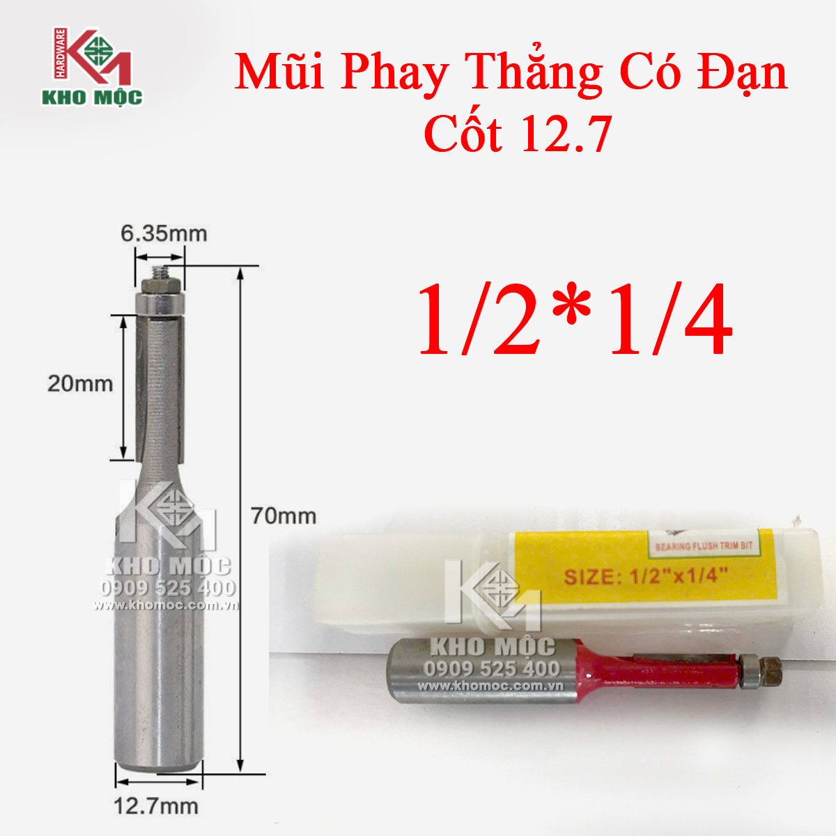 Mũi Phay Gỗ Thẳng Đầu Bi 1/2