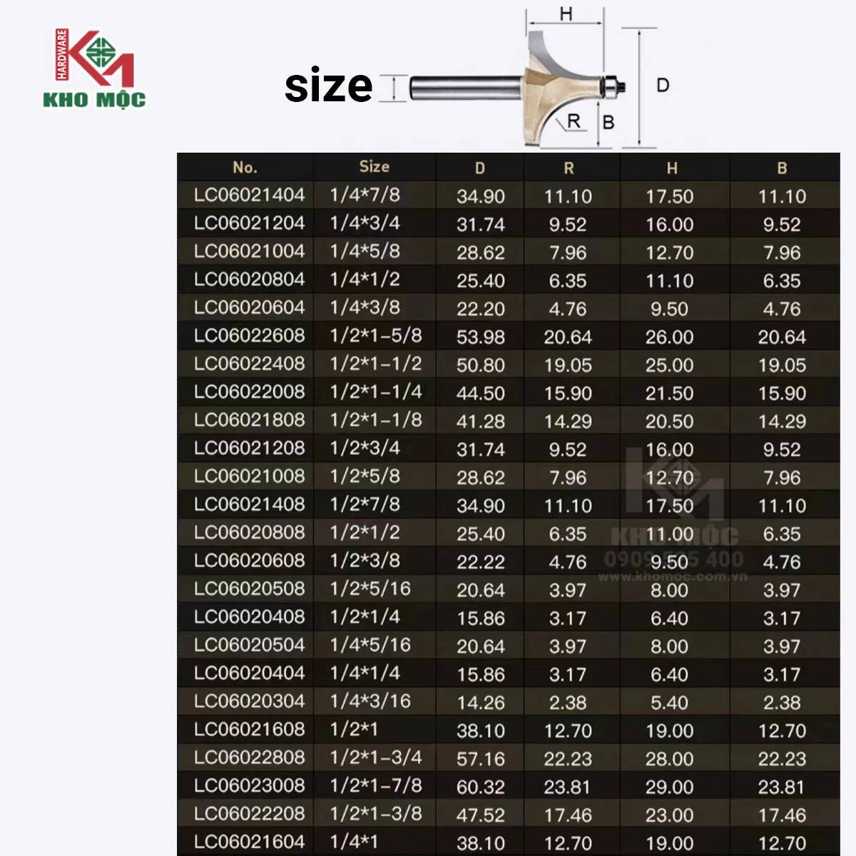 MŨI PHAY GỖ ROUTER LÕM – BO CẠNH R3 và R5