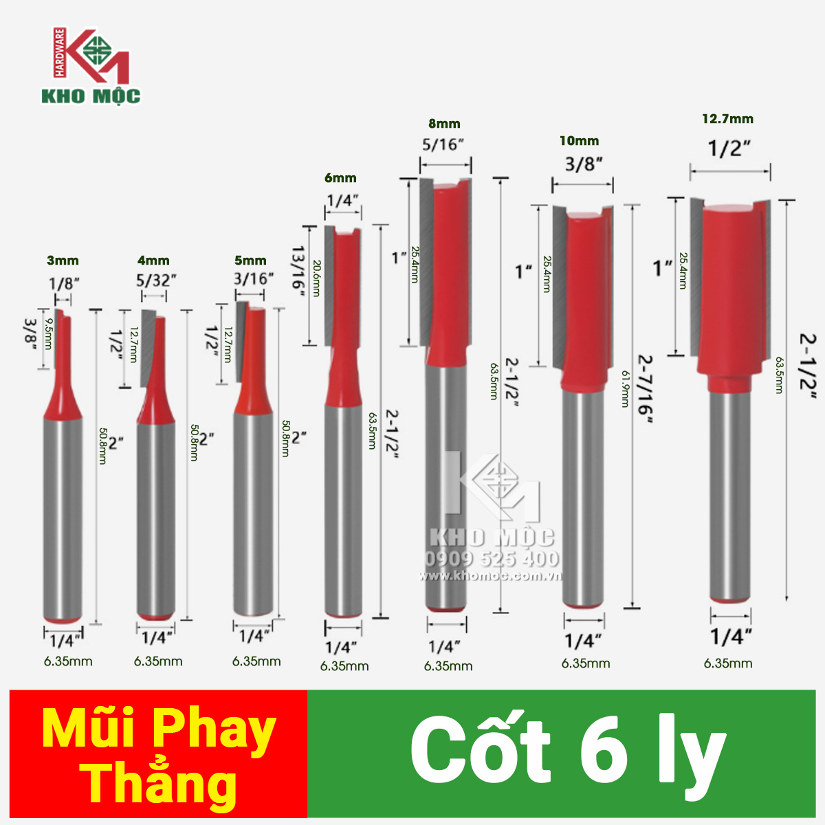 MŨI PHAY GỖ THẲNG - KHÔNG ĐẠN