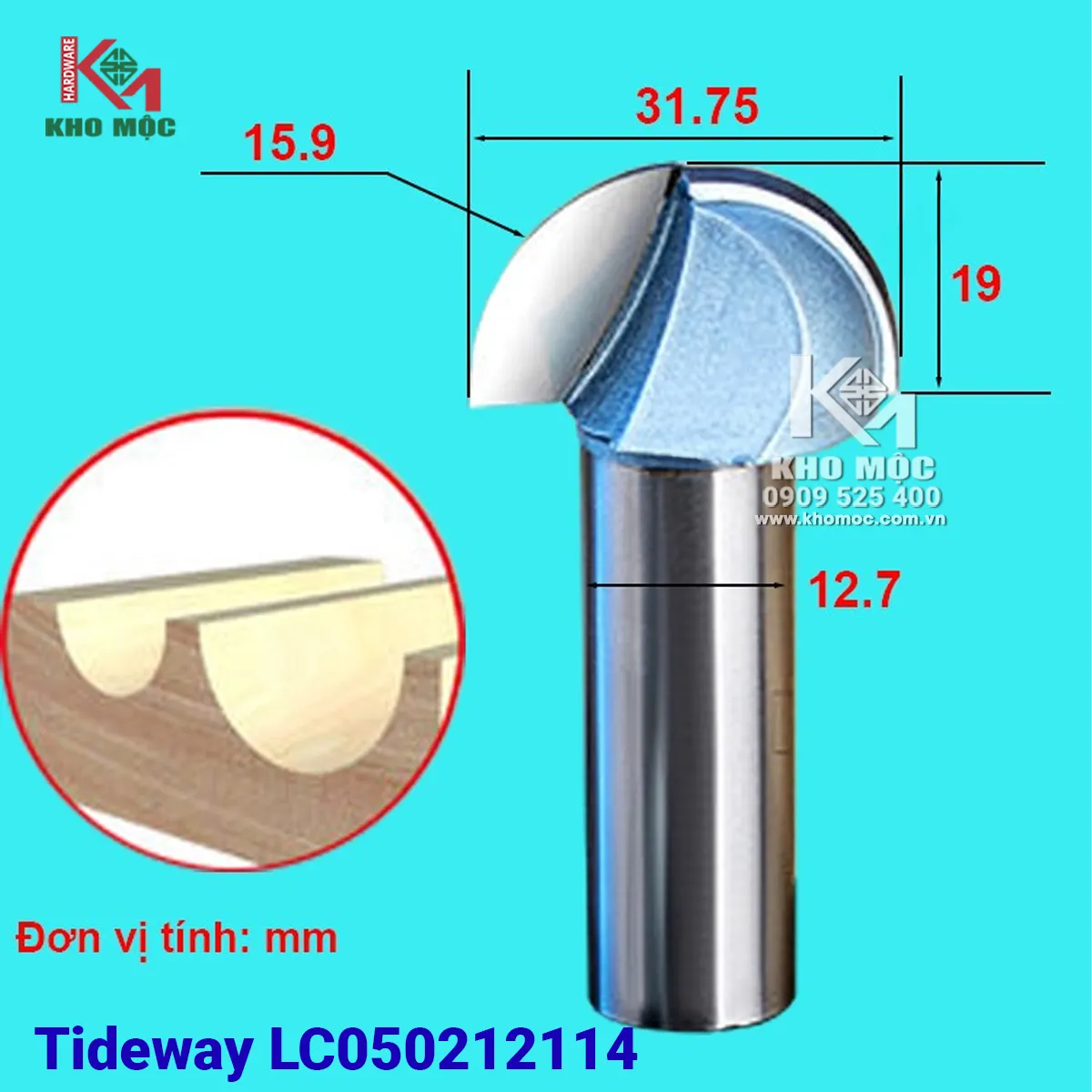 Mũi soi bán nguyệt ngang Tideway LC0502 chuyên dùng soi ra 1 nửa đường tròn lõm, soi héo cổ đồ mini, đường lõm trang trí trong sản xuất đồ gỗ, nội thất. Sản phẩm lắp trên máy có cốt 6.35mm, lắp trên có cốt 12.7mm cần lắp thêm trục phóng cốt và trên máy CNC.